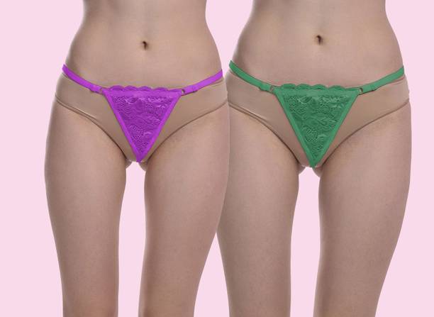 Pack of 2 Women Thong Purple, Green Panty