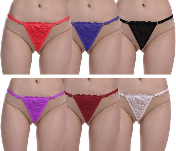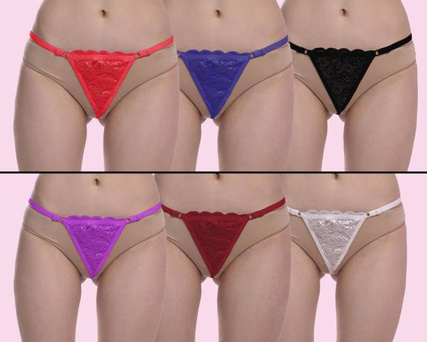 Pack of 6 Women Thong Red, Blue, Black, Purple, Maroon,...