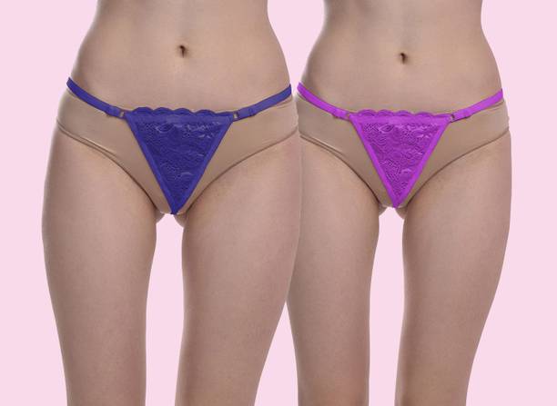 Pack of 2 Women Thong Blue, Purple Panty