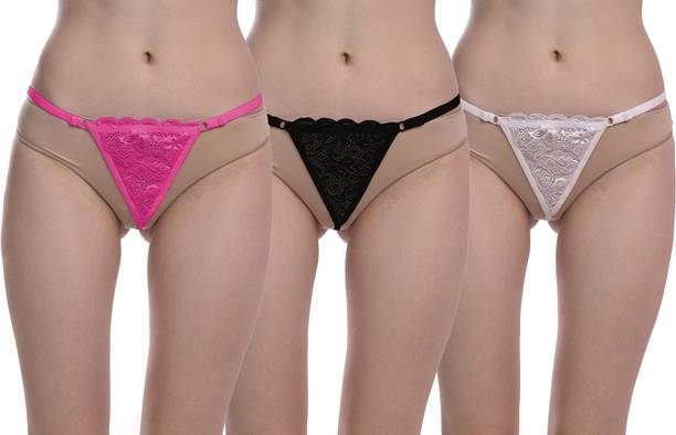 Pack of 3 Women Thong Pink, Black, Brown Panty