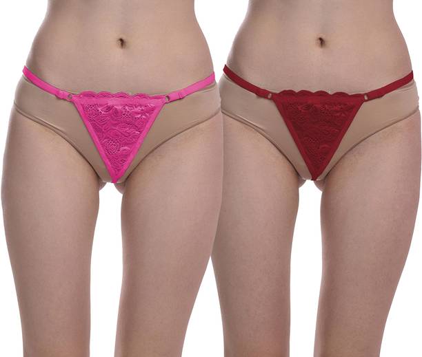 Pack of 2 Women Thong Pink, Maroon Panty