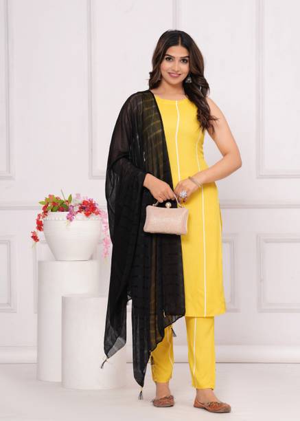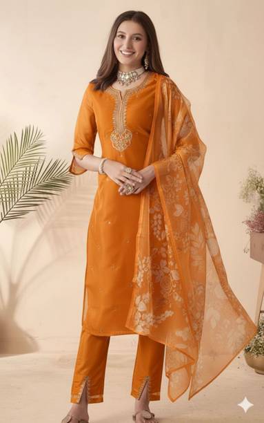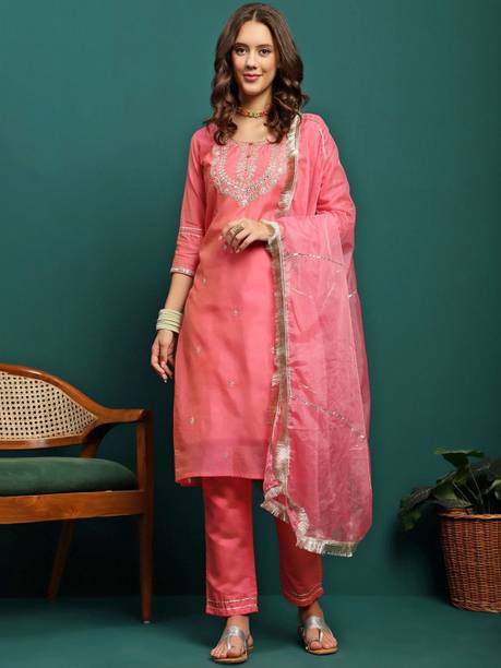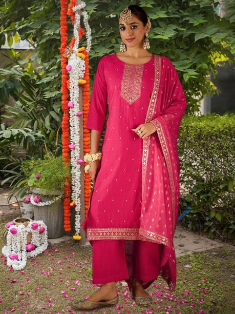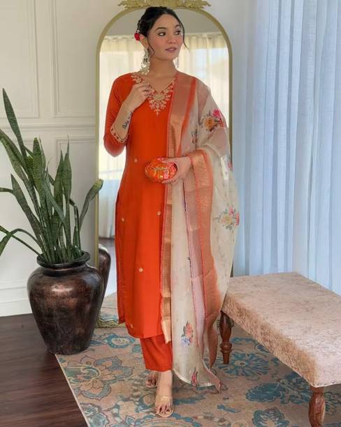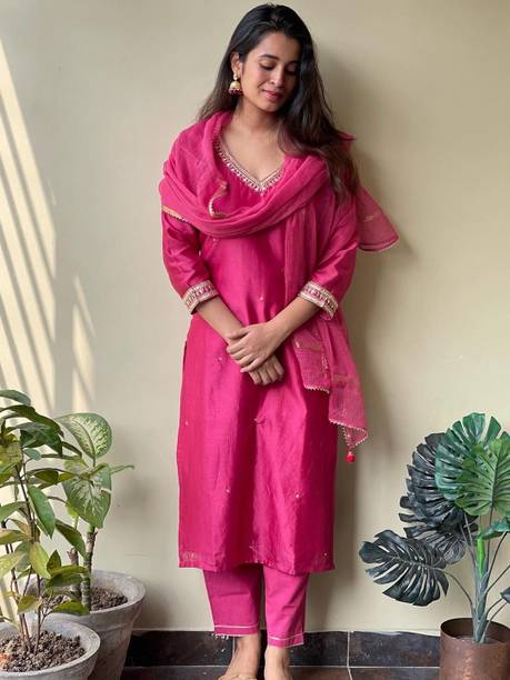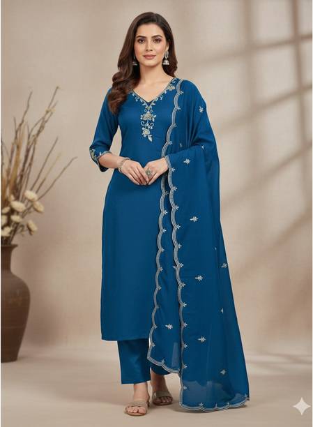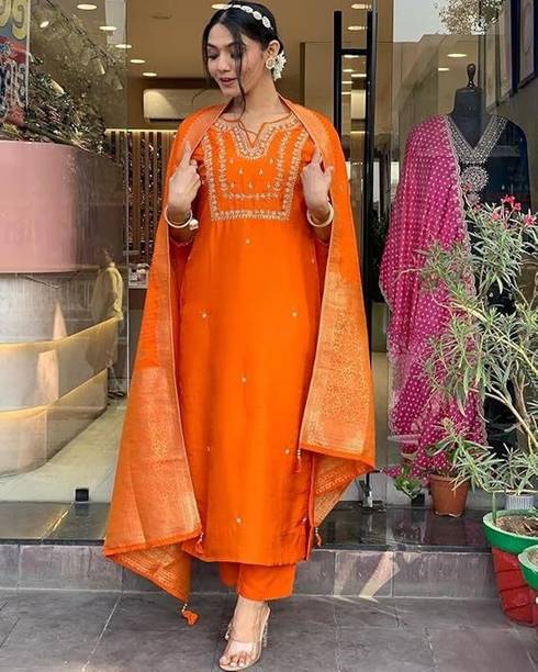 Glam up your fashion wardrobe with trendy trouser suits that are not only stylish but also comfy. These dresses will highlight your curves, making you look charming on every occasion. You can check out various unique designs and colours online. These traditional outfits are perfect for festive events, and formal occasions as well as for daily wear. They are made of soft and breathable materials and can be a great addition to your closet. Top brands like Lamba Creations, Youthnic, Indo Era, Bounty Sales, Klosia, and more are selling trouser suits for women online. It is recommended to explore individual products to get more details on neck style, sleeve length, fabric used, and much more. You can refer to the sizing chart to find the ideal outfit based on your style preferences and requirements. Accessorise these dresses with matching bangles, earrings, and footwear to complete the look. A variety of patterns, ranging from A-line, embroidered, floral motifs, solid, and more are available online. Machine wash is ideal for cleaning these garments and retaining their shine and colour. Each product design and fabric care may vary. So, make sure to check the product label before placing your order online. Kurti sets with dupatta and bottom wear are also in stock.