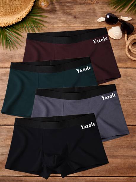 Do you want to upgrade your everyday comfort? If yes, find versatile men's trunks and experience the joy of unmatched fit and feel. When it comes to snug-fit daily essentials for men, briefs and trunks cannot be overlooked. Your quest for comfort and well-crafted briefs ends here. The men's briefs come in various fabrics, including cotton, lycra, hosiery blends, and many more. Whether you want to stay cosy or breezy, these briefs offer everything you need in wide-ranging materials. With sizes ranging from 3XS to 4XL, finding your perfect fit is effortless. Explore a variety of styles, from classic solid patterns to chequered to striped trunks to trendy animal prints, and pick the ones that best suit your requirements. Besides style and colours, selecting the correct band size and elasticity also matters. A too-loose band may lead to things collapsing down, while a too-tight band can cause band impressions, redness, or itchiness. Add a touch of self-expression and confidence to your daily essentials for that inner boost of comfort.