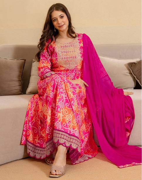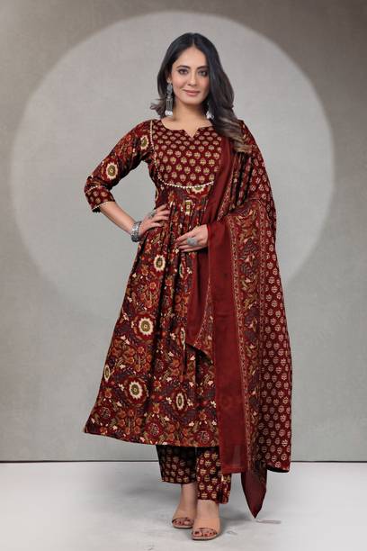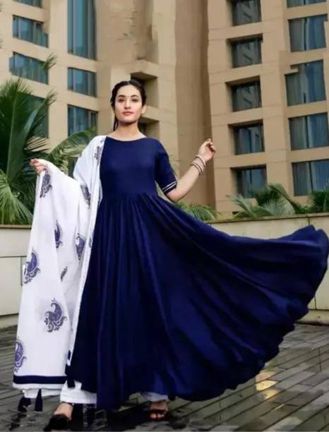 With a flare and fit silhouette, umbrella suits are one of the most popular outfits loved by women of all age groups. Available in a variety of fabrics, you can find these beauties in many colours and patterns, such as paisleys, geometric prints, appliques, and so on. You can browse for the latest umbrella suit from brands like Shafnufab, R.V.FASHION, Sixteen Creation, Mozila, Sixteen Creation, and many more. This long ethnic wear can be worn and paired with palazzo, churidar, or embellished skirts. Styled with an embroidered dupatta and statement jewellery, these gowns can be worn for night outs or parties. You can always mix and match the kurtis with different colours of leggings and accessories based on the occasion. Natural fabrics like cotton and linen are comfortable and are apt to be worn during summers. Anarkalis are made with silk, satin, etc., and can be paired with embellished scarves for a luxurious and flowy appearance. You can also wear these with a long skirt to create a versatile look, and be worn in a formal or casual setting. While choosing your ensemble, keep in mind the occasion and weather, wash care, your body type, personality, and so on. You can shop for umbrella suits online and add them to the cart for doorstep delivery.The information you are reading has been last updated on 23-Feb-26.