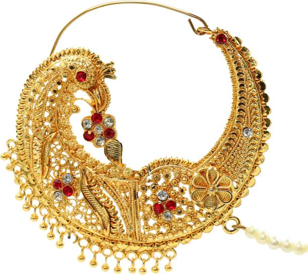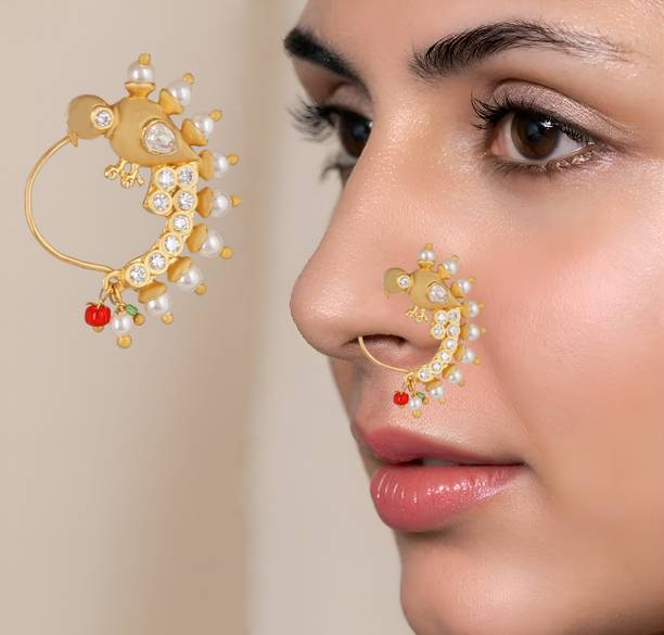 Wedding gold nath has become a popular piece of jewellery for Indian weddings. You can check out different wedding gold nath designs online. Choose from a wide selection of gorgeous latest wedding gold nath designs, as well as nose rings, nose studs, nathiya, and other nose jewellery from various brands. Some popular brands that offer these accessories online are Divastri, Parna, Shrungarika, Yash Jewels Emporium, VSHINE FASHION JEWELLERY, and more. You have the option of selecting a modern or traditional piece to complete your entire look for your special day. Depending on your outfit, you can choose your wedding gold nath design with different gemstones like crystals, cubic zirconia, diamonds, or pearls. Always keep your face shape in mind while selecting the perfect gold nath for you. The half-circle and curve nose rings are ideal for a round face. You can choose from a variety of thin designs. The ideal nose rings for a sharp nose are cashew nut-shaped nose rings and nose rings with pearls and studs. You can also select from a range of materials like alloy, brass, copper, metal, or mother of pearl for your nath and look great in this Indian jewellery. Place your order online and enjoy a stress-free shopping experience. The information you are reading has been last updated on 22-Feb-26.