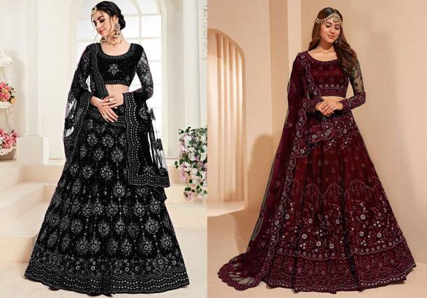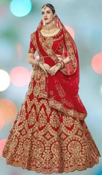 A wedding is a beautiful moment to cherish, especially with your loved ones. When shopping for your dream look, you can check out wedding lehengas for brides online. You can adorn yourself in beautiful lehenga cholis in beautiful patterns like self-designed, embellished, embroidered, printed, applique, floral prints, digital prints, solid colours, etc. You can add beautiful accessories like maang tikka, nose rings, bejewelled necklace, dangling earrings, waistbands, etc. You can buy the latest wedding lehengas for brides in vibrant shades of red, golden, pink, blue, and various multi colour options. Choose your bridal look in full-sleeved, half-sleeved and three-fourth sleeve cholis. You can complete these styles by draping a beautiful and chic dupatta over them. You can opt for the classic and glamorous lehenga choli look or go Indo-western lehenga and crop top style. Look fabulous and cosy with art silk, net, polyester, jacquard, pure silk, and satin blend wedding dresses on your special day. These lavish fabrics help add the perfect amount of bling and comfort to your special attire. You can check out popular brands such as DhuluFactory, SAARA, LIMTORI, Diva N Diya, and SUSHOBHAN offer gorgeous wedding lehengas for brides online. The information you are reading has been last updated on 05-Mar-26.