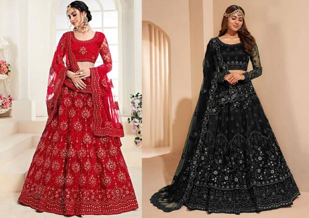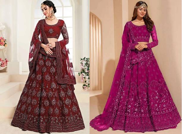 A wedding is a beautiful moment to cherish, especially with your loved ones. When shopping for your dream look, you can check out wedding lehengas for brides online. You can adorn yourself in beautiful lehenga cholis in beautiful patterns like self-designed, embellished, embroidered, printed, applique, floral prints, digital prints, solid colours, etc. You can add beautiful accessories like maang tikka, nose rings, bejewelled necklace, dangling earrings, waistbands, etc. You can buy the latest wedding lehengas for brides in vibrant shades of red, golden, pink, blue, and various multi colour options. Choose your bridal look in full-sleeved, half-sleeved and three-fourth sleeve cholis. You can complete these styles by draping a beautiful and chic dupatta over them. You can opt for the classic and glamorous lehenga choli look or go Indo-western lehenga and crop top style. Look fabulous and cosy with art silk, net, polyester, jacquard, pure silk, and satin blend wedding dresses on your special day. These lavish fabrics help add the perfect amount of bling and comfort to your special attire. You can check out popular brands such as DhuluFactory, SAARA, LIMTORI, Diva N Diya, and SUSHOBHAN offer gorgeous wedding lehengas for brides online. The information you are reading has been last updated on 15-Jan-26.