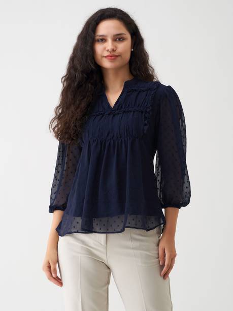 Trying to browse by the type of top may be a good option when the focus is on the look and style statement. With an assortment such as cold-shoulders, peplum, flared, layered, sheer, button-down, blouson, and tie-up neck available, choices are aplenty. Curating a customized top for yourself may be a lot easier once you combine the type of top you want with other options like the neck, sleeve and colour.