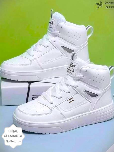 Stylish white ankle shoes are the new trendsetting variety of men’s shoes that are popular and fun to sport. The ankle pattern in the shoes is what makes them different and unique. Check out the different types, themes, sizes and colour combinations available in the shoes before ordering them online. The striking and comfortable ankle-type pattern can be worn as casual or party wear. Sport the shoes with long sleeves, T-shirts, and jeans for a casual look or half-sleeved formal shirts with cotton trousers for a semi-casual look. Utilise the most up-to-date shoe designs and select the desired theme from a variety of styles, including plimsolls, patent leather, printed, synthetic patent, and adjustable sneakers. The desired fastening may be selected too, whether velcro fastening, zip fastening, buckle closure, lace-ups or slip-on. There are also various types of shoes available in this pattern, like sneakers, outdoor, canvas, corporate casuals, dancing shoes, driving shoes, etc. Buy white ankle shoes online from brands like Zixer, Roaster, Rambo, Ray J, Spade Club, and more. You can check user ratings and make your choice accordingly. Order a desired design and size in the shoes and pay with a suitable payment mode.