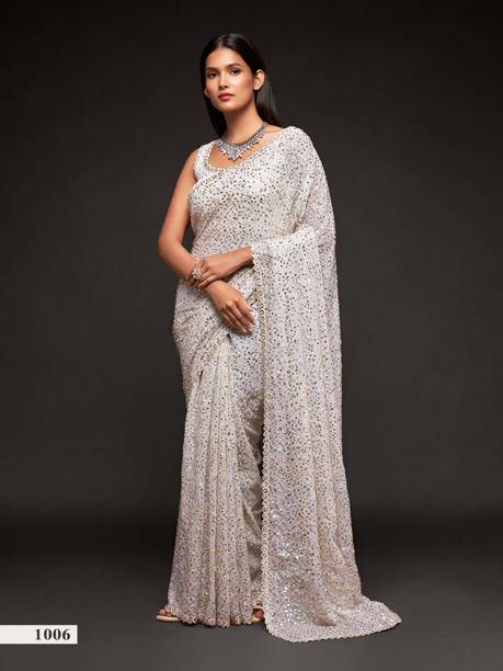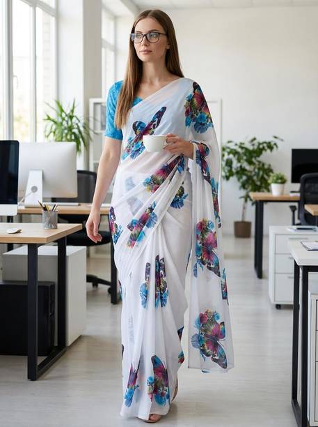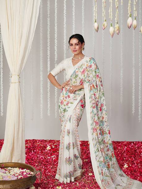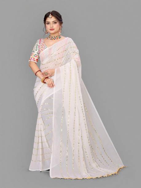 Georgette sarees are an excellent choice for functions and parties as they hold an air of richness and sophistication that makes them appealing to many. A white georgette saree paired with a vibrant sequined designer blouse is an evening look that exudes elegance while keeping you comfortable. Georgette is an extremely light, sheer, and matte crepe fabric. It was initially produced from silk before synthetic fibres made their way into fashion. Georgette is an excellent option for sarees as it is easy to drape and light to carry with no extra pinning-up required to keep the wrapping and pleats in place. It also gives a flattering silhouette. White georgette sarees are suitable for any season, particularly for Indian summers, for their breathable fabric and heat resistant colour. You can find a varied range of options for white georgette sarees online depending upon the pattern, type, length, design, style, colour, etc. Brands such as 21CHOICE, 3SIX5, A P Super Store, Fashion Fiza, Femiro fab, and many more offer a comprehensive collection of beautiful white georgettes that you can choose from and order online. The information you are reading has been last updated on 22-Feb-26.