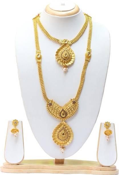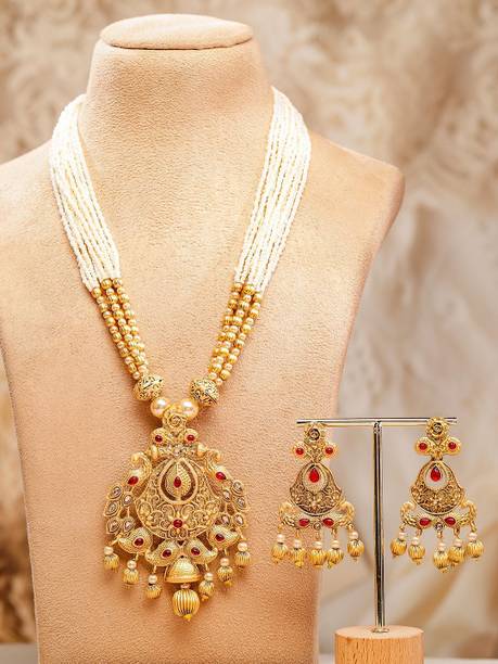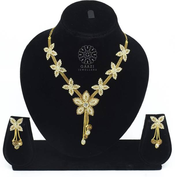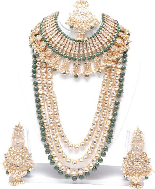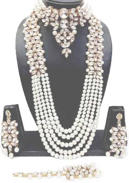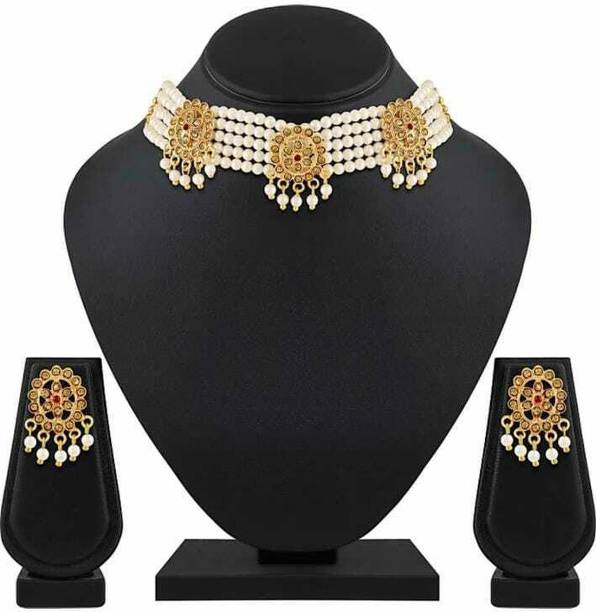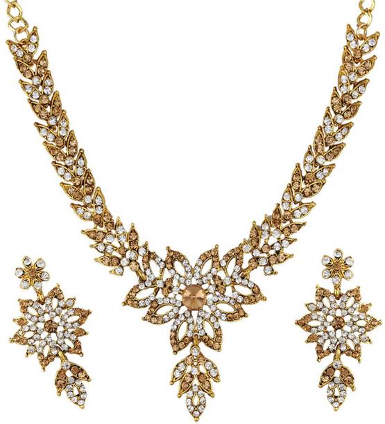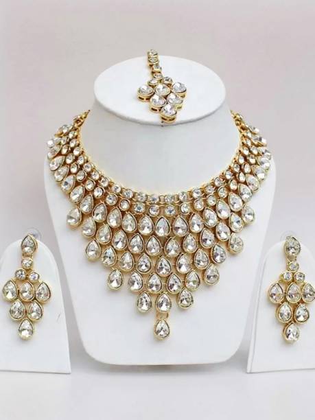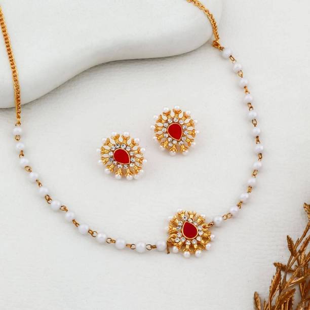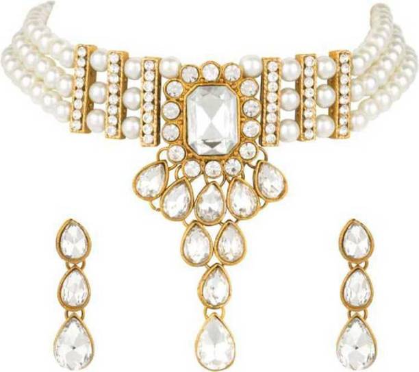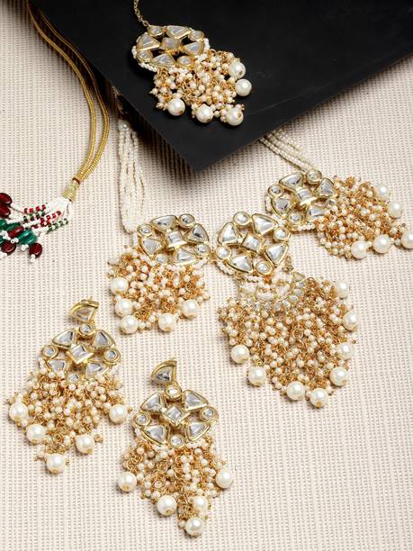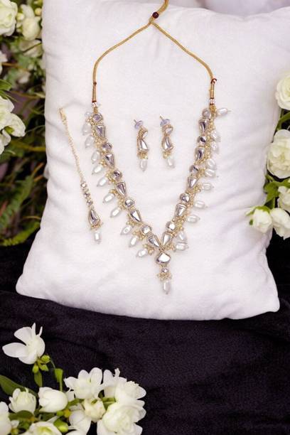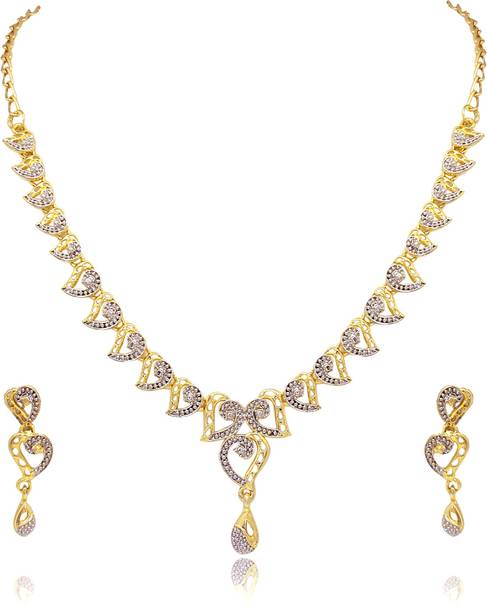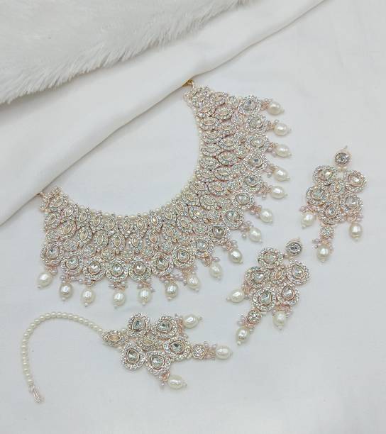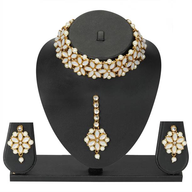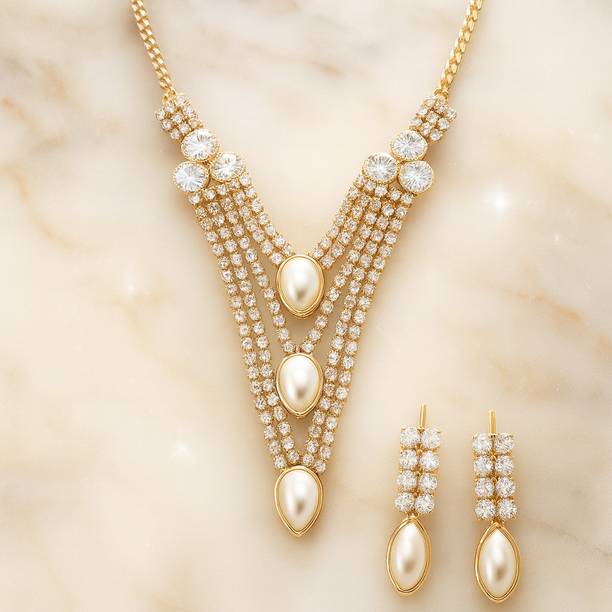 White gold jewellery pieces are well-known for their brilliant shine and neutral hues. Experiment with your festive looks by opting for contemporary and ethnic ornaments to level up your fashion game. The adornments give off a sophisticated vibe, adding elegance to your ensemble. Dark and neutral colours mix nicely with white gold jewellery, so you can dress up in them. Browse and choose from eye-catching themes, including Kundan, pearl bracelets, rose gold rings, diamond divas, layered, minimal luxury, Swarovski studded, traditional chokers, and so on. A wide range of jewellery items can be found online, ranging from gold-plated jewel sets, attractive pendants and anklets, dainty earrings, and much more. Jewels adorned with precious stones add a colour pop to your outfit, making you stand out from the crowd. Swipe and select from gemstones like cubic zirconia, amber, beads, diamond, emerald, jade, garnet, quartz, sapphire, rubies, topaz, and pearls, among others. You can even explore materials like copper, ivory, bronze, metal, nickel, leather, brass, and oxidised silver, to name a few. Take a look at the product description to learn more about the base material, plating, sales package content, and so on. Buy exquisite adornments online from brands like Padmavati, Atasi International, Sukkhi, Shree Creation, Maytreline, and others.