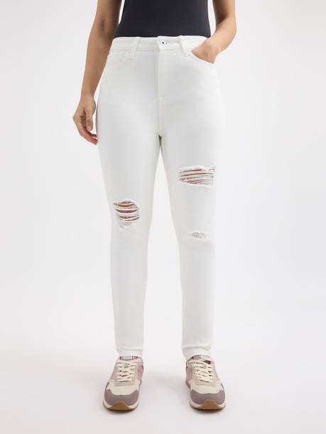 White ripped jeans for men are trousers for the new generation with the latest rip and cut design. A variety of trendy patterns, such as patchwork, acid washed, solid, chevron, ombre, etc., are available to add style and sophistication to your persona. There are different themes available, such as rip and repair, anti-fit, perfect stretch, skinny fit, artful patchwork, etc. Choose the rising pattern, such as low, mid, or high rise to suit your comfort needs. Varied fade styles like light, clean, and heavy can be obtained with different distress options like mild distress, clean look, high distress, and knee slit. The unique styling sets the jeans apart from the conventional varieties for bottomwear. With variable fittings accessible such as regular, slim, jogger, skinny, tapered, etc. They can be coupled with tees or casual shirts. Fabrics such as cotton, polyester elastane denim, cotton polyester-lycra blend, denim lycra blend, cotton lycra blend, pure cotton, etc., are used to tailor the jeans. Choose the latest white ripped jeans (in) new styles at the best prices online. Buy white ripped jeans from brands such as Mast & Harbour, Rich And Rare, U. S. POLO ASSN., TIM N COOK, SF Jeans by Pantaloons, and more. Order them online with attractive offer options for convenient home delivery. The information you are reading has been last updated on 14-Jan-26.