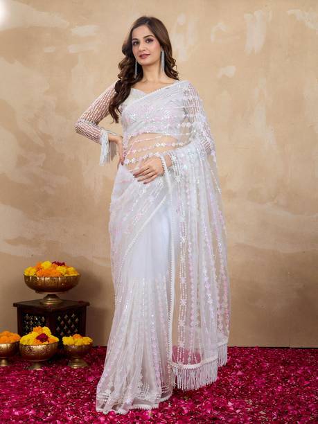 For women who are not afraid to experiment with their outfits, a white saree for weddings will put you high on the fashion pedestal. A white saree makes for a chic and subtle outfit, giving you a gorgeous and sophisticated look. White sarees, for generations, have been an essential part of Bengali, South Indian, and Parsi weddings. A white saree is a wardrobe staple and comes in plenty of varieties like one with sequins, embroideries, lacework, zari, or brocade. You can also pick an elegant designer saree with attractive colourful accents, contrast borders, and patchwork detailing. The ethereal white saree can be adorned with a statement embellished blouse. You can choose from ample fabric options like silk, georgette, cotton, chiffon, satin, and net to suit your style and comfort. Elevate your style quotient with the traditional yet contemporary collection of white saree for weddings and make a bold fashion statement. Glam up your look by teaming your saree with footwear and accessories that complement your outfit. A great collection of the latest white saree for weddings is available from brands like Anugrah Textile, Perfect Wear, VR Fashions, Manvish Drapes, Naomika, and many others. The information you are reading has been last updated on 21-Feb-26