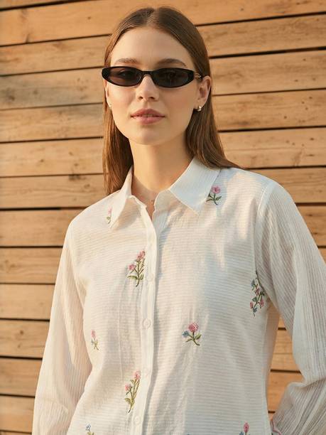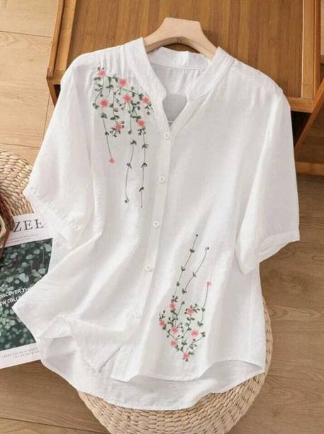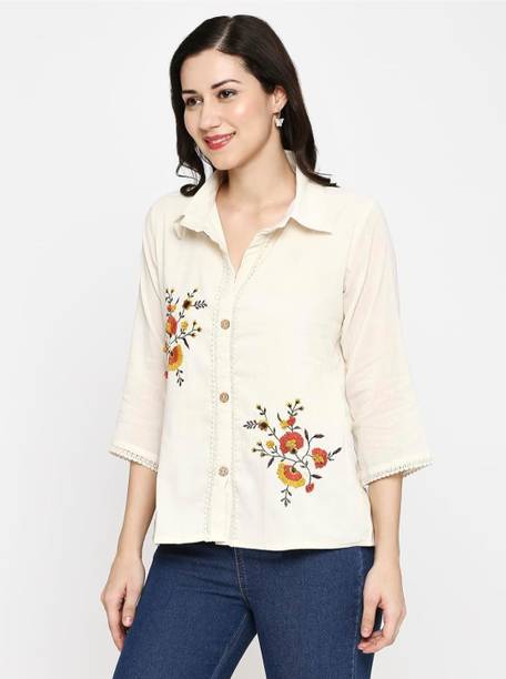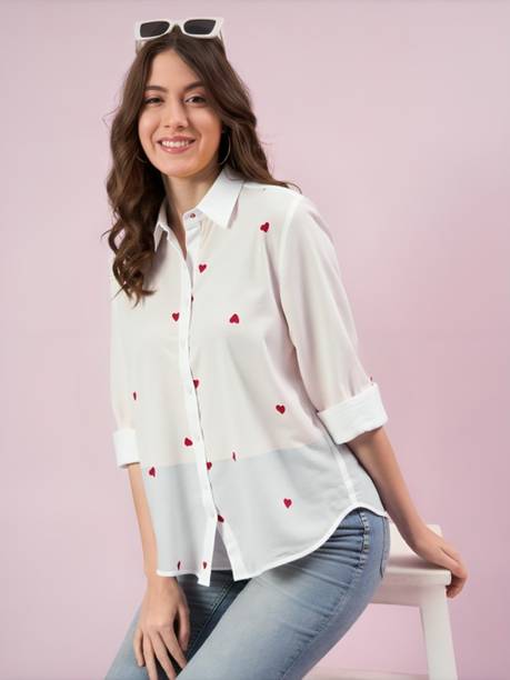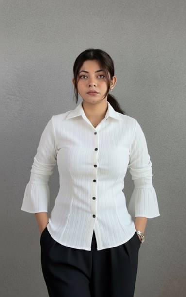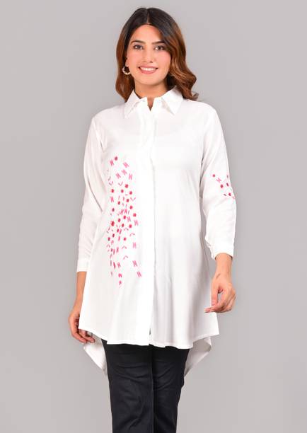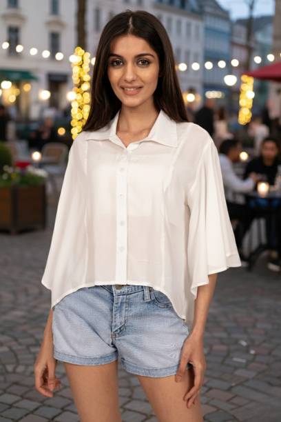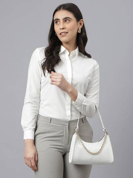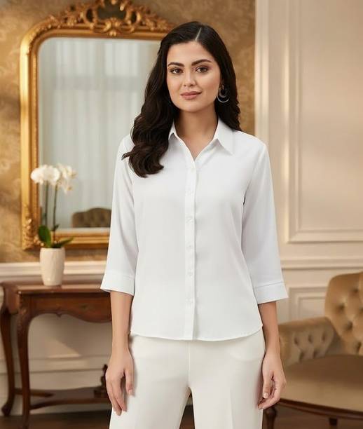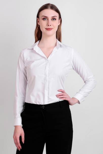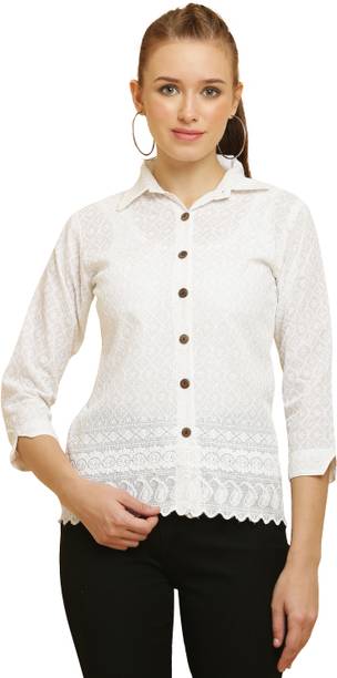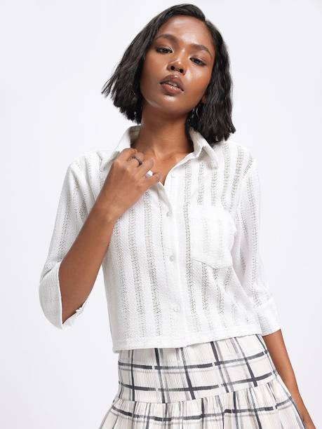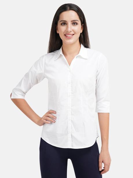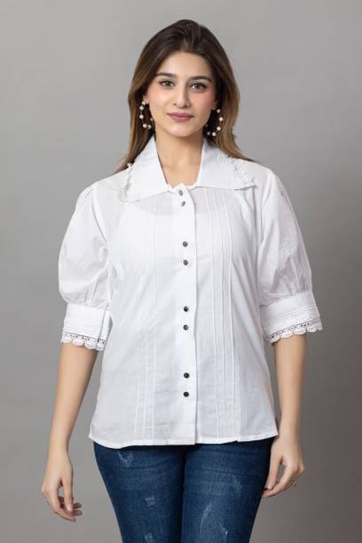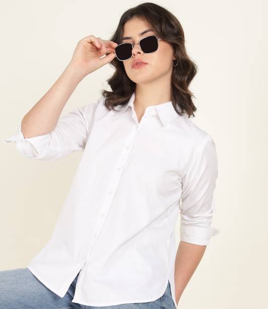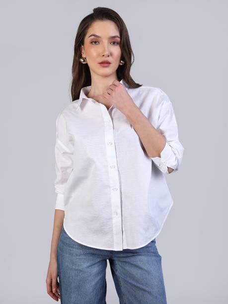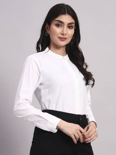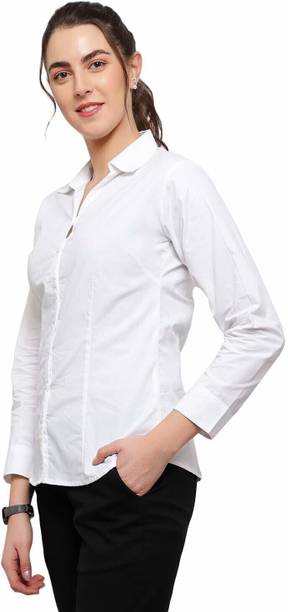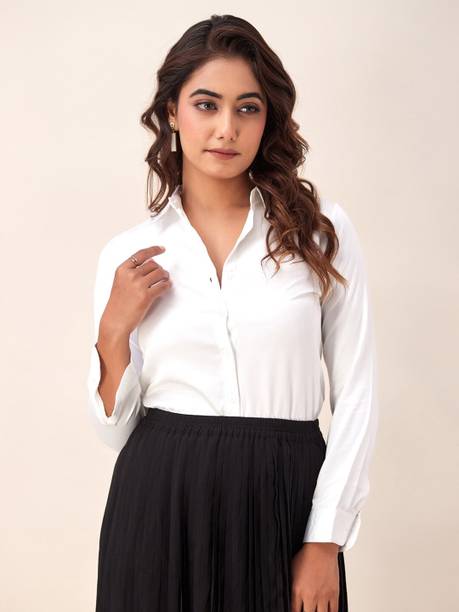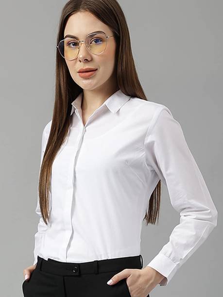 A white shirt (for) women is preferred for its chic design and classic look. Being a highly versatile and comfortable clothing option, it is an essential part of almost every woman's wardrobe. This clothing can be worn in several casual and semi-casual settings. In addition, it can be easily teamed up with a pair of jeans, skirts, pants, palazzos, trousers, etc. You can get such shirts in various trendy designs, fits, and styles. A slim-fit shirt gives a sleek look, while a regular-fit shirt offers all-day comfort. In addition, you can select from subtle floral prints to charming self-design, evergreen solid to chequered patterns, elegant stripes to graphic prints, and many more. Select the one that best matches your style and stay true to your fashion sense. Apart from that, you can get numerous fabric options to choose from, such as silk, cotton, polyester, viscose rayon, etc. Additionally, you can select from different collar styles, such as mandarin, spread, round, and henley, among others. Create a statement wherever you go by donning your preferred white shirt (for) women. Buy your preferred shirts at varied prices online from the latest collection of brands such as Pyramid Fashions, V-Mart, Metronaut, Selvia, High Star, and many more, and get doorstep delivery.