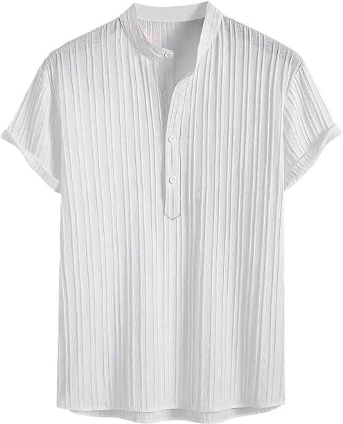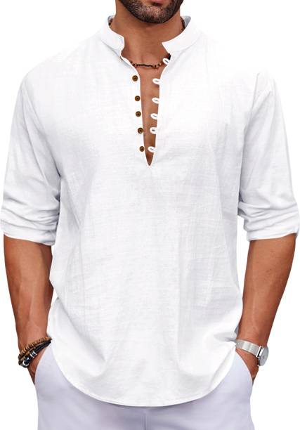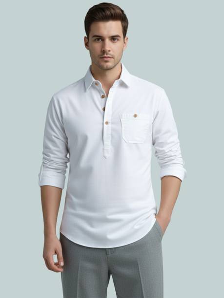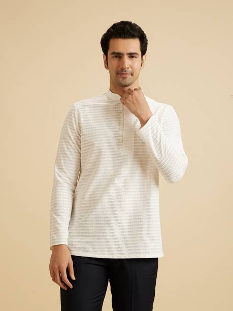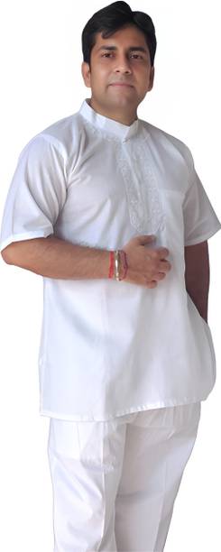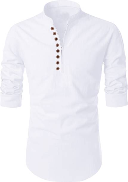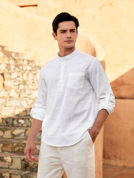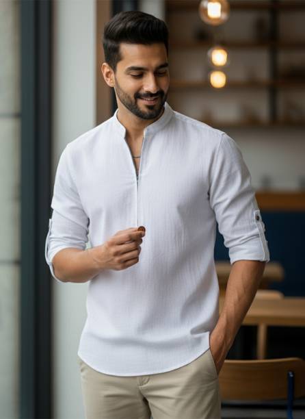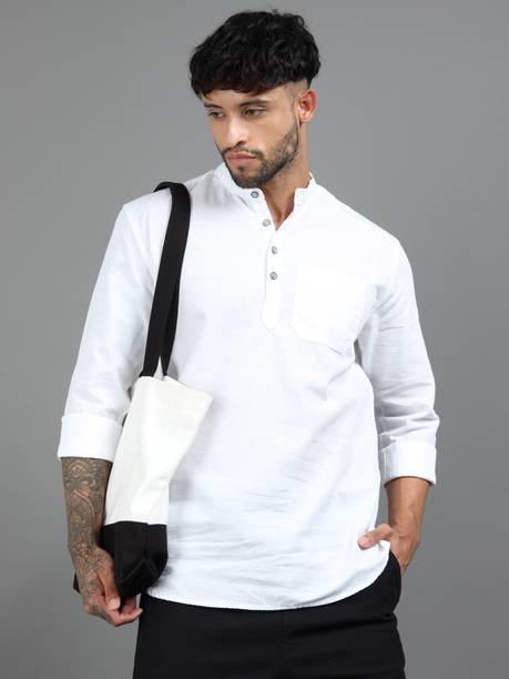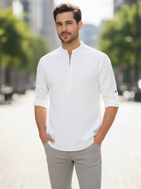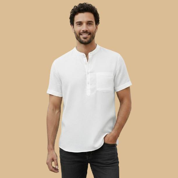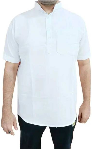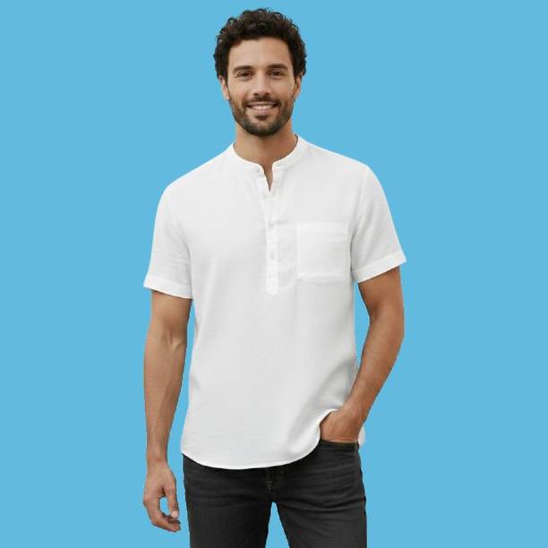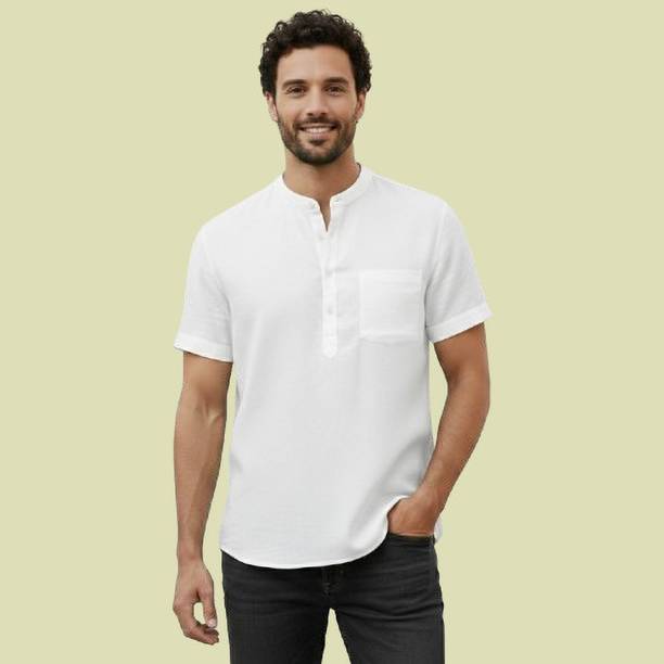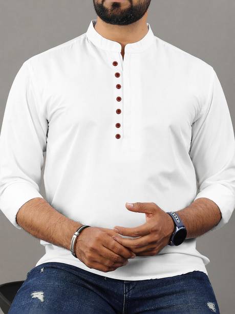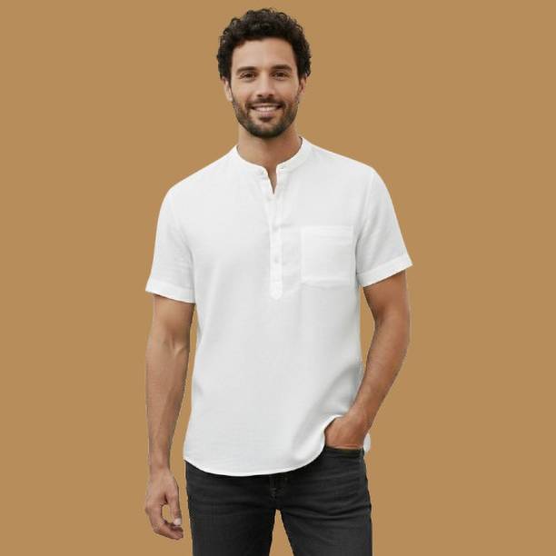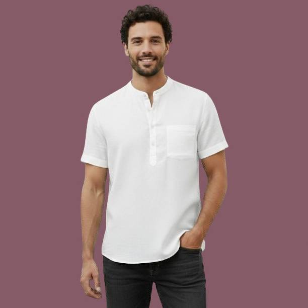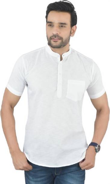 A stylish white short kurta for mens portrays elegance and stands apart due to its unique design. It can be a smart addition to men's wardrobes due to the simple yet comfortable factor provided. The kurtas are especially suitable on a hot sunny day and can suit any occasion, from formal to casual. Check out the wide variety of short kurtas available online in white colour and choose the pattern, length, sleeve type, theme, fabric and shape. Explore the ratings, reviews and prices before buying the kurtas online. Asymmetric, straight, pathani, front slit, trail cut, etc., are some kurtas shapes available online. The kurtas' material can also be selected appropriately, including cotton, pure linen, cotton rayon, hemp, satin, silk blends, dupion silk, linen blends, etc. Scroll through the various patterns available such as printed, chequered, embellished, polka dots, geometric print, dyed, striped, etc. Couple a short kurta with a pair of jeans and loafers for a casual look. Or wear a shirt-style kurta with sandals for a semi-casual look. Buy a white short kurta for mens online from brands like Latest Chikan, Janki Enterprise, Finivo Fashion, Kuons Avenue, Lee Cross, etc. You can look through and choose white short kurtas that fit your preferences and style