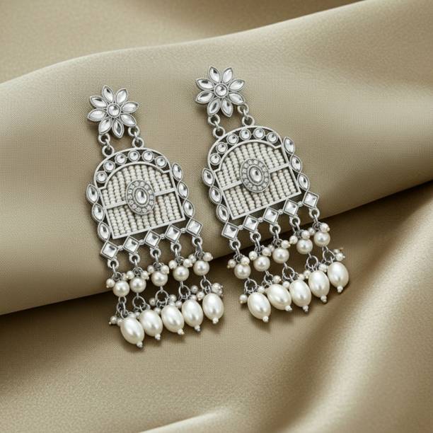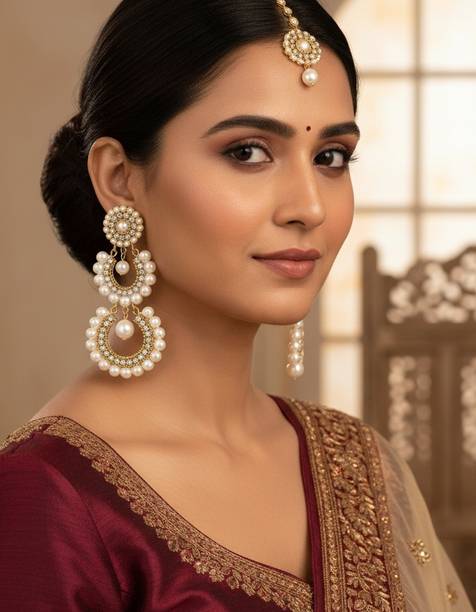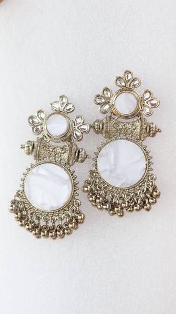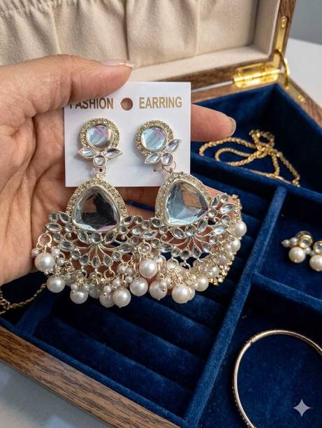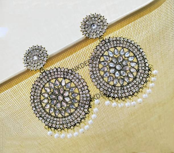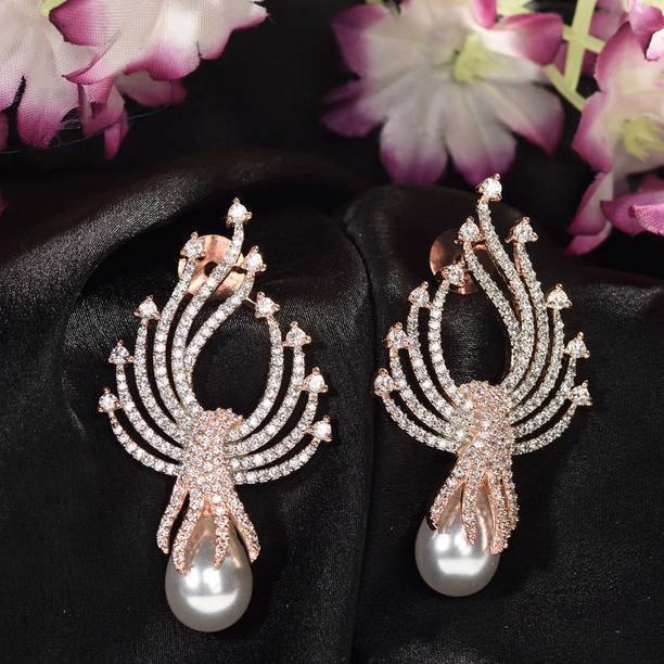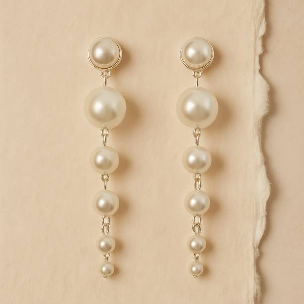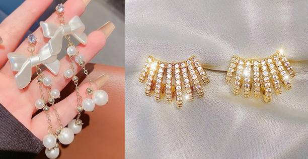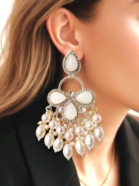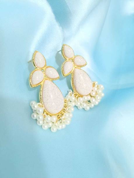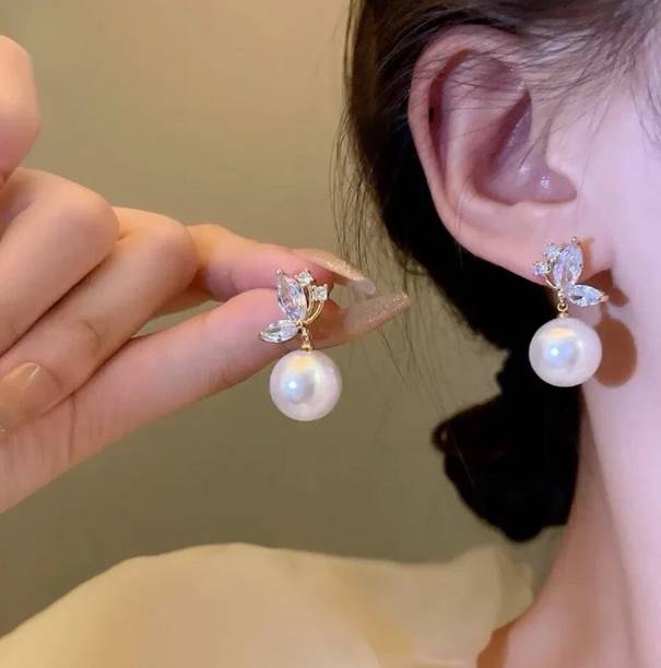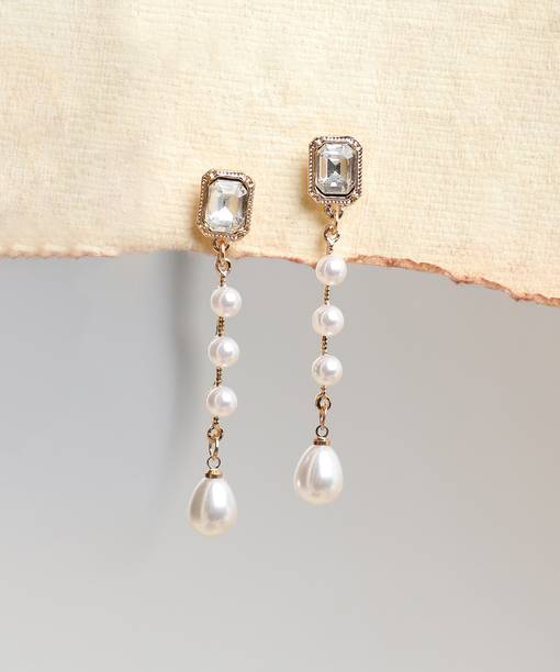 Looking for accessories that complement the jazziness of your party outfits? You cannot go wrong with drop earrings which boast white stones delicately dangling from them. If you’re going down the classic old school glamour route, complete your look with dangle earrings which feature tiny white stones in addition to large pearls grandly hanging from them.