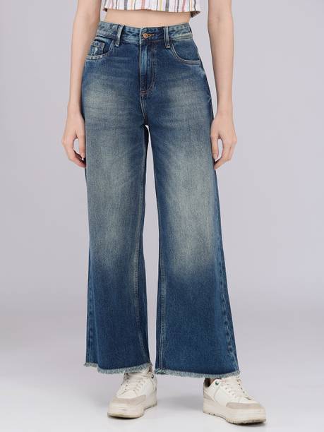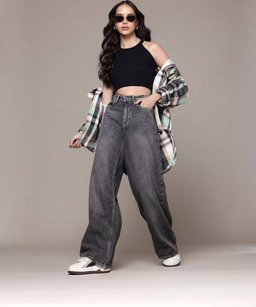 Wide leg jeans have become a popular choice among women as they are versatile, comfortable, and are a style statement. Available in various colours, patterns, and shades these are made of fabrics like cotton, denim, polycotton, and so on. The level of distress varies from a clean knee slit to high distress and raw edges. These are designed with light to heavy fade and with low, medium, and high-rise waist. You can browse for the latest wide leg jeans from brands like American Eagle Outfitters, Levi’s, METRONAUT, Tokyo Talkies, Vero Moda, and many more. The bootleg and the flared fit are similar in style. They have wide leg openings, usually mid or high rise, and can be paired with sneakers or sandals. The flared bottoms, also known as bell bottoms, are body-flattering at the thighs and hips. These are suited for a casual or professional setting. The boyfriend denim comes with a baggy fit and is designed to be extra comfortable and airy. These can be paired with crop tops, tight blouses, and tops. These styles are suited for women with broad shoulders as it helps to balance the look. You can shop for wide leg jeans online and add them to the cart for home delivery. The information you are reading has been last updated on 29-Oct-25.
