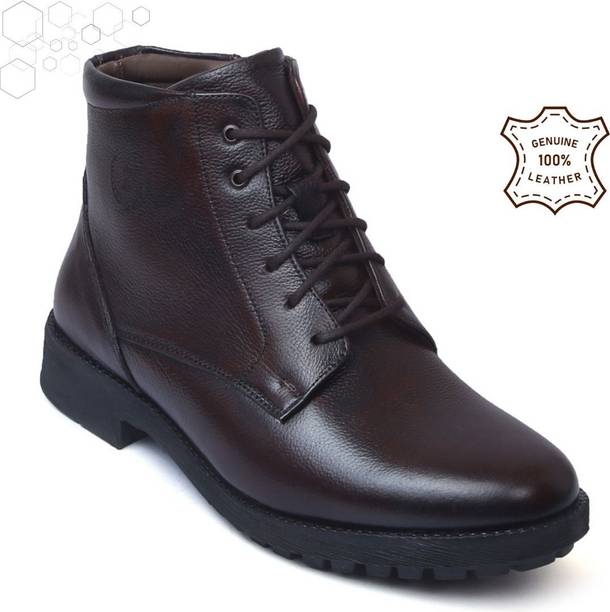Zoom Shoes Genuine Leather High Ankle Boots| Lace-up & Soft Cushioned Insole Daily Comfort Boots For Men