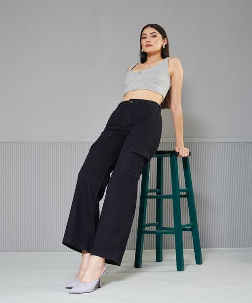 Offering a stylish and edgy twist on traditional denim, black flared jeans can elevate your overall look. Whether you want to keep it casual or dress up for a night out, these jeans add a unique touch, thus making them a must-have in your wardrobe. With a wide range of choices to choose from, these flared jeans cater to all age groups and body shapes. While the button closure provides a secure fit, these jeans are also equipped with belt loops that offer adjustability and are reliable. Check out the various rise styles these jeans offer. High-rise styles provide a flattering fit and create a balanced silhouette, while their mid-rise counterparts provide a classic and timeless look. For easy access and quick storage, the jeans are also crafted with various pockets. Also, look into the different fabrics these black jeans are made of, ranging from cotton lycra blend to denim. Cotton lycra blend is known for stretchability, and cotton blend adds breathability and denim fabric is known for its durability. And when you shop online, you can explore brands such as Puella, Guti, Atvajain, Tokyo Talkies, United Denim and more. So why wait? Shop for your ideal black flared jeans online and enjoy hassle-free doorstep delivery!