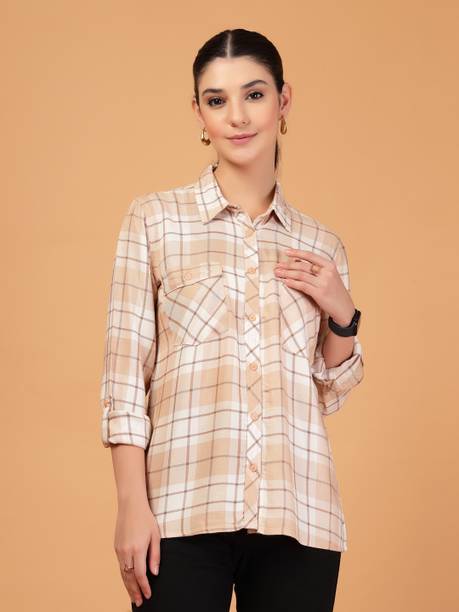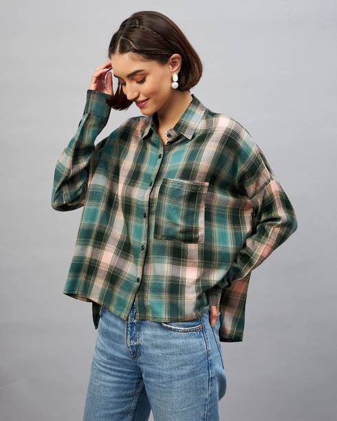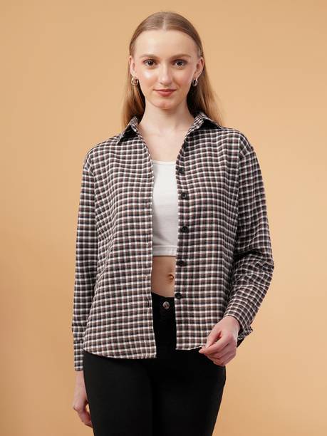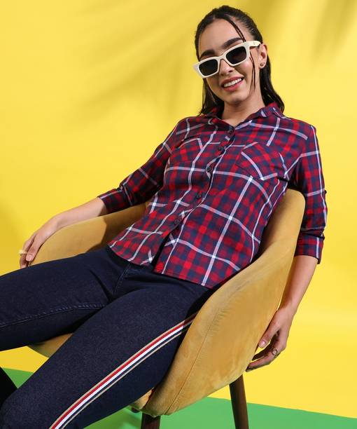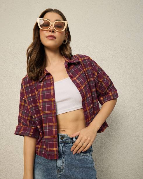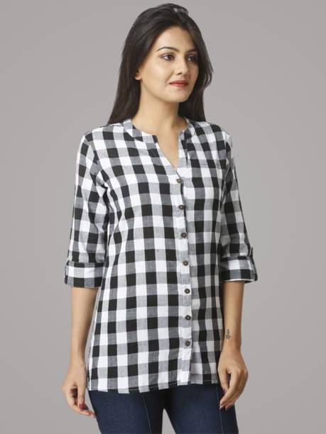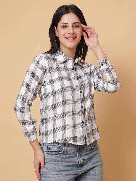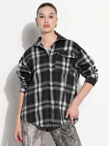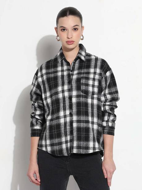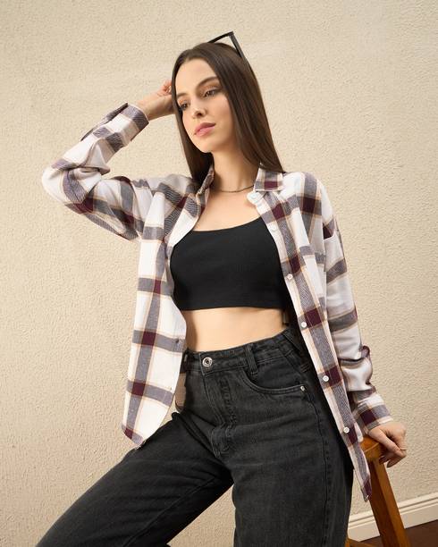 Checked shirts for women are a fashion staple that effortlessly blends style and versatility. If you are into fashion, add these shirts to your wardrobe collection to style them up or down according to your mood and the occasion. These garments are versatile, making them a must-have in your closet. Whether you're going for a casual, office, or evening look, these shirts can be easily styled to suit the event. You can pair these women's garments with jeans or skirts for a complete look. These shirts can also be layered with a blazer for a chic and sophisticated appearance. Brands that sell ladies' checked shirts online are Tokyo Talkies, Roadster, Sassafras, Vero Moda, Van Heusen, and others. If you are looking for a versatile garment, opt for black and white check shirts in eye-catching styles. From an array of style options, choose black and white check shirts for women that can effortlessly exude a chic and fashionable vibe. However, if you are in love with vibrant colours, opt for women's pink checked shirts. Depending on your style and personal preferences, select short or long check shirts for ladies that match your fashion needs. Buy checked shirts for women to flaunt unique and creative fashion statements wherever you go.