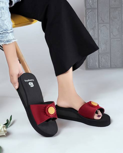 You can conveniently buy women’s slides online by comparing the designs and patterns offered by various brands and choosing a pair that best suits your requirements. These sandals are available in many forms and themes such as gliders, solid sliders, beach flip-flops, sporty sliders, monotone slides, flatforms, printed sliders, and monsoon footwear. Beach flip-flops and sporty sliders are a good option for active young women who are always on the go. The flatforms and monotone sliders can be a good choice for casual and office wear purposes. Select the footwear material and colours as per your needs and preferences. These versatile and trendy slippers are a must-have in your shoe closet. Shop online and get the best deal on these trendy sandals.