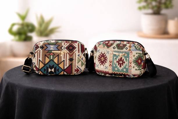 Women's sling bags are an essential accessory for most girls and women. These come in chic designs and have the right amount of bling in their designs. Matte sling bags with toned-down shades are great for office use, while embellished sling bags are every college girl's favourite. You can pick styles according to your needs. You can buy these in small, medium, large, and free sizes according to your needs. Choose from fringed bags, saddled, exotic animal pattern slings, checkered prints, metallics, crafted, and mini-handled latest women's sling bags online. These bags are available in different designs like hand-held bags, clutches, sling bags, shoulder bags, messenger bags, totes, pouches, etc. These are great to take to parties, semi-formal events, a casual hangout with friends, dates, and evening parties. You can choose these bags in your favourite colours like green, pink, red, white, purple, blue, cream, light green, and many more. These women's sling bags come in banana fibre, artificial leather, flex, linen, polyester, plastic, etc. Add these bags to all your daily looks. They go well with Indo-Western looks, ethnic wear, alternative styles, and more. A few popular brands for your ideal sling bags are VAN HEUSEN, KHADIM'S, Leather Land, Fastrack, and Allen Solly.