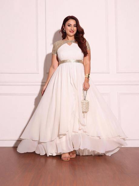 e.) AKS Couture Women Maxi White Dress