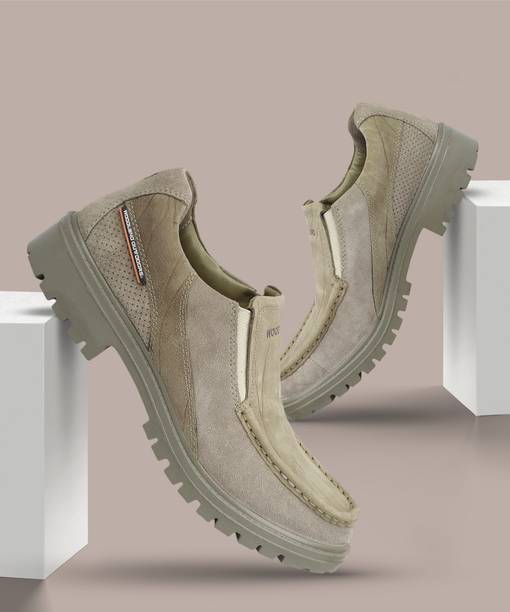 Woodland shoes can captivate both outdoor enthusiasts and urban fashionistas alike. These shoes are designed to endure everyday wear and tear without compromising style, thanks to their skilled craft. High-quality uppers, sturdy soles, and impeccable stitching come together to create products that can withstand diverse rigorous conditions. The brand offers shoes that combine strength and flair, so one can boldly take on any challenge and yet look their best. Apart from that, you can select from various style options, from casual shoes for when you're just chilling, slip-on sneakers for that laid-back vibe, boots that can be handy options, and trendy outdoor shoes for the adventurous souls. Additionally, you can count on them to deliver you the comfort and support required whether you're touring a busy metropolis or hiking in the heights. With the blend of quality and timeless aesthetic appeal, these shoes can be a remarkable choice for those who seek to embrace the world with confidence and panache. So explore the latest collection of shoes at different price options. Shop for Woodland shoes online and buy footwear that can handle your daily grind and still look extremely stylish.