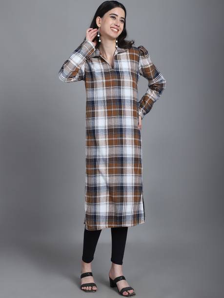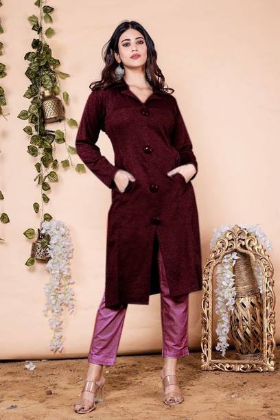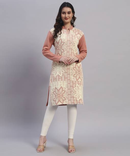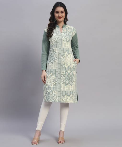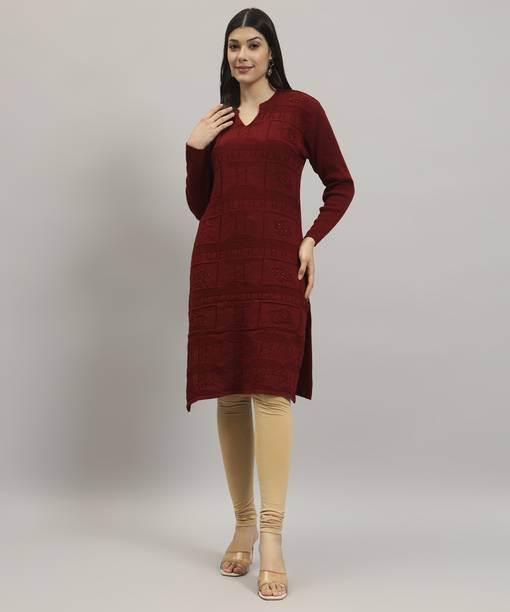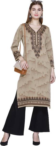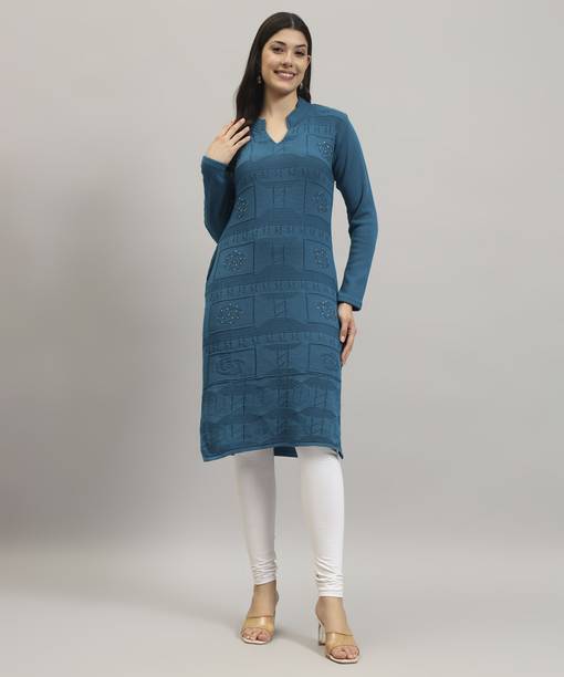 Woollen kurtas are all about comfort and fashion. No need to cover your favourite kurta's style with a sweater during the cold seasons. Instead, this ethnic garment can double as your comfort wear and regular clothes. You can check out the latest woollen kurta collection available online. These woollen attires come in many designs, colours, patterns, and measurements. Check out the latest woollen kurta designs, such as pathani, ethnic, asymmetrical, Anarkali, flared, front slit, etc. Depending on the occasion, you can opt for these designs for a striking look for the winters. These are ideal formal wear for religious festivals, anniversaries, marriage ceremonies, and many other functions. You can choose from geometric prints, tropical prints, Bahaar, mottled Ikkat, sequined sets, block prints, bagru prints, and more. These come in comfortable fabrics like rayon fleece, pure wool, poly crepe, viscose blend, wool blend, etc. All of these cosy Kurtas come in all sizes and measurements. You can buy up to 7XL, and it is available in ankle length, calf lengths, above the knee, below the knee, hip length, knee-length, and more. You can also choose from full sleeves, half sleeves, three-fourth sleeves, short sleeves, and sleeveless options. You can check out brands like Anmi, Urban Creation, Saadgi, Essentiele, and Rosary for the best woollen kurtas options. The information you are reading has been last updated on 08-Oct-25.