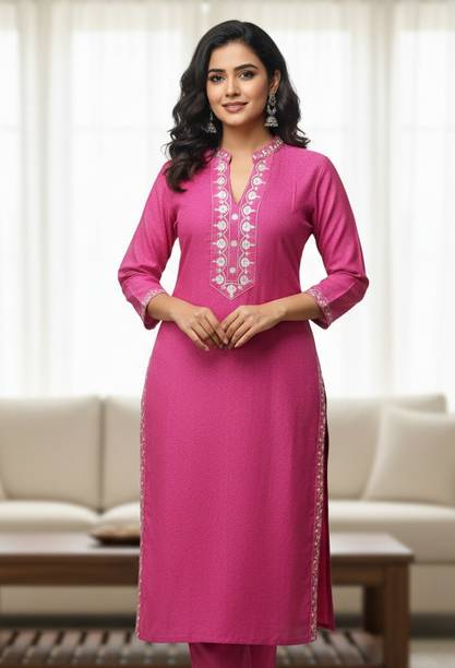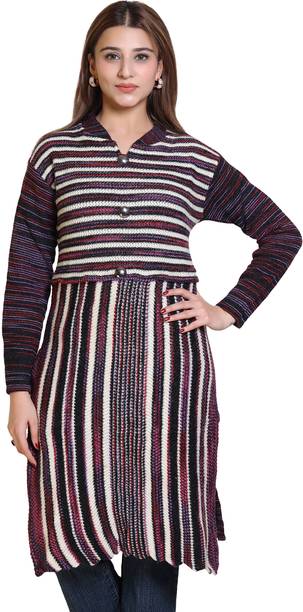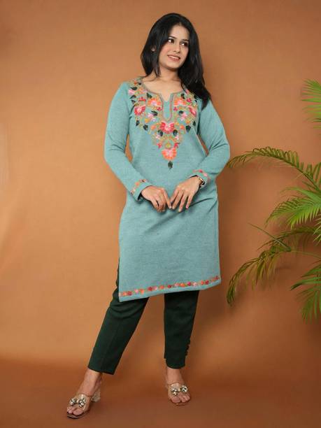 Woollen kurtas are all about comfort and fashion. No need to cover your favourite kurta's style with a sweater during the cold seasons. Instead, this ethnic garment can double as your comfort wear and regular clothes. You can check out the latest woollen kurta collection available online. These woollen attires come in many designs, colours, patterns, and measurements. Check out the latest woollen kurta designs, such as pathani, ethnic, asymmetrical, Anarkali, flared, front slit, etc. Depending on the occasion, you can opt for these designs for a striking look for the winters. These are ideal formal wear for religious festivals, anniversaries, marriage ceremonies, and many other functions. You can choose from geometric prints, tropical prints, Bahaar, mottled Ikkat, sequined sets, block prints, bagru prints, and more. These come in comfortable fabrics like rayon fleece, pure wool, poly crepe, viscose blend, wool blend, etc. All of these cosy Kurtas come in all sizes and measurements. You can buy up to 7XL, and it is available in ankle length, calf lengths, above the knee, below the knee, hip length, knee-length, and more. You can also choose from full sleeves, half sleeves, three-fourth sleeves, short sleeves, and sleeveless options. You can check out brands like Anmi, Urban Creation, Saadgi, Essentiele, and Rosary for the best woollen kurtas options. The information you are reading has been last updated on 21-Feb-26.