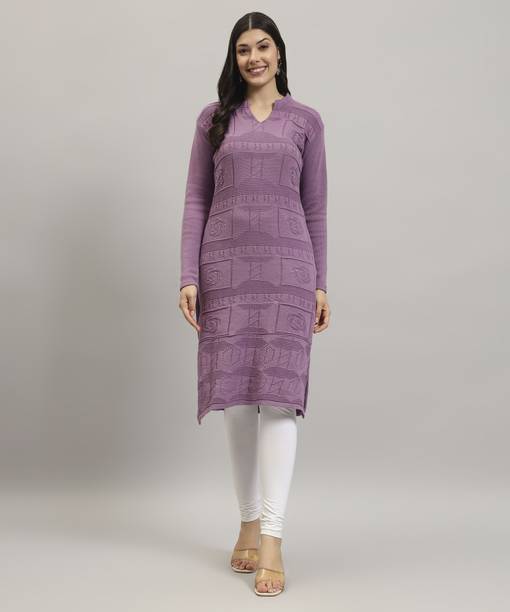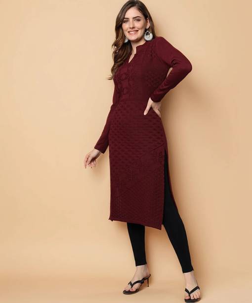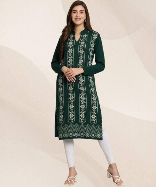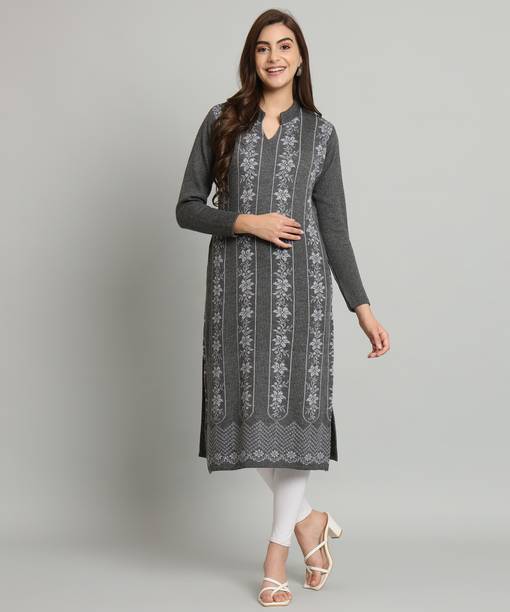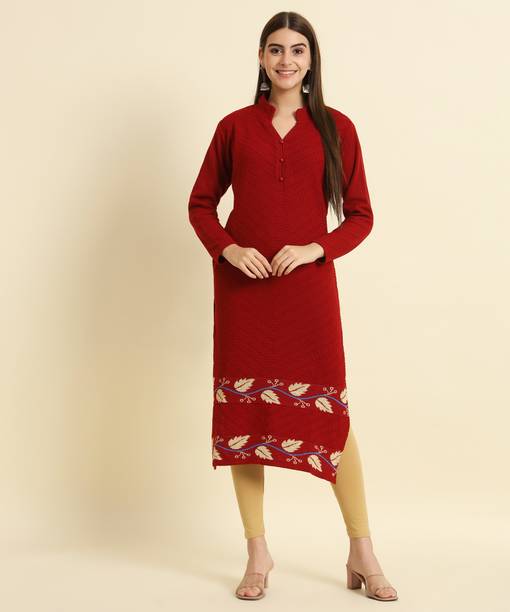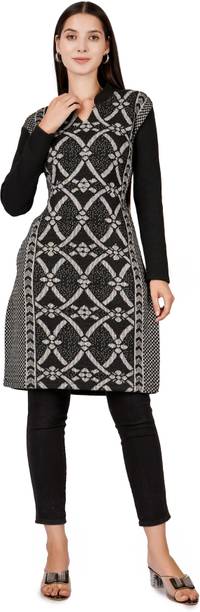 Woollen kurtas are all about comfort and fashion. No need to cover your favourite kurta's style with a sweater during the cold seasons. Instead, this ethnic garment can double as your comfort wear and regular clothes. You can check out the latest woollen kurta collection available online. These woollen attires come in many designs, colours, patterns, and measurements. Check out the latest woollen kurta designs, such as pathani, ethnic, asymmetrical, Anarkali, flared, front slit, etc. Depending on the occasion, you can opt for these designs for a striking look for the winters. These are ideal formal wear for religious festivals, anniversaries, marriage ceremonies, and many other functions. You can choose from geometric prints, tropical prints, Bahaar, mottled Ikkat, sequined sets, block prints, bagru prints, and more. These come in comfortable fabrics like rayon fleece, pure wool, poly crepe, viscose blend, wool blend, etc. All of these cosy Kurtas come in all sizes and measurements. You can buy up to 7XL, and it is available in ankle length, calf lengths, above the knee, below the knee, hip length, knee-length, and more. You can also choose from full sleeves, half sleeves, three-fourth sleeves, short sleeves, and sleeveless options. You can check out brands like Anmi, Urban Creation, Saadgi, Essentiele, and Rosary for the best woollen kurtas options. The information you are reading has been last updated on 10-Oct-25.
