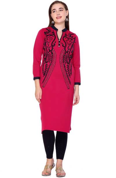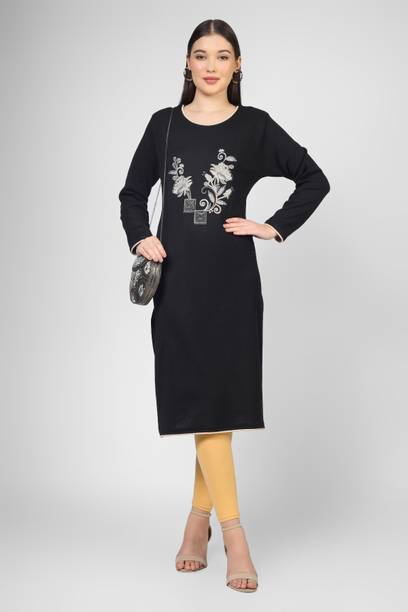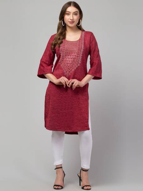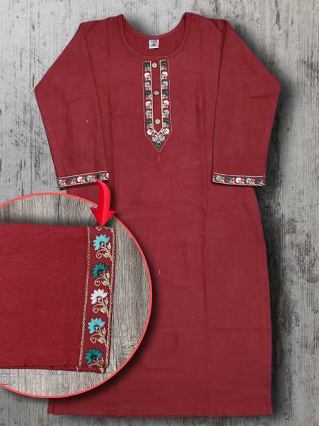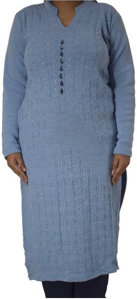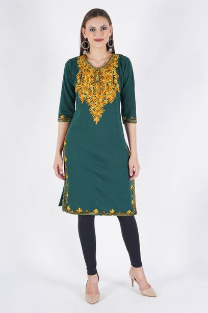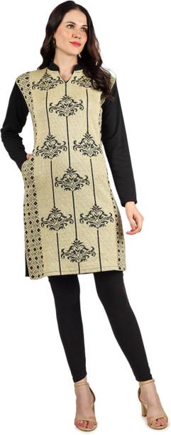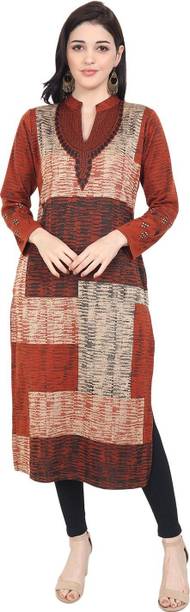 Woollen kurtas are all about comfort and fashion. No need to cover your favourite kurta's style with a sweater during the cold seasons. Instead, this ethnic garment can double as your comfort wear and regular clothes. You can check out the latest woollen kurta collection available online. These woollen attires come in many designs, colours, patterns, and measurements. Check out the latest woollen kurta designs, such as pathani, ethnic, asymmetrical, Anarkali, flared, front slit, etc. Depending on the occasion, you can opt for these designs for a striking look for the winters. These are ideal formal wear for religious festivals, anniversaries, marriage ceremonies, and many other functions. You can choose from geometric prints, tropical prints, Bahaar, mottled Ikkat, sequined sets, block prints, bagru prints, and more. These come in comfortable fabrics like rayon fleece, pure wool, poly crepe, viscose blend, wool blend, etc. All of these cosy Kurtas come in all sizes and measurements. You can buy up to 7XL, and it is available in ankle length, calf lengths, above the knee, below the knee, hip length, knee-length, and more. You can also choose from full sleeves, half sleeves, three-fourth sleeves, short sleeves, and sleeveless options. You can check out brands like Anmi, Urban Creation, Saadgi, Essentiele, and Rosary for the best woollen kurtas options. The information you are reading has been last updated on 10-Oct-25.