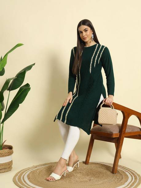 No girl’s wardrobe is complete without some trendy kurtis. Whether it's for workwear or casual wear, kurtis look great on women. However, as winter approaches, most of us tend to keep our kurtis packed inside and take out our winter clothing. Don't let your sense of style deteriorate with the fall in the temperature. This winter, don't limit your style to sweatshirts and pullovers, try something new like woolen kurtis. Whether you’re hanging out with friends on a cold winter night or going on a long drive in the cold, woolen kurtis are a welcome change to look stylish. So add a few woolen kurtis to your wardrobe and stay up to date.