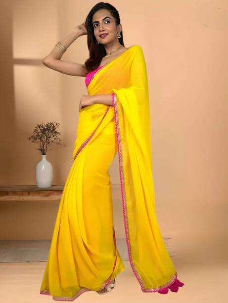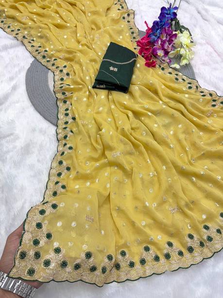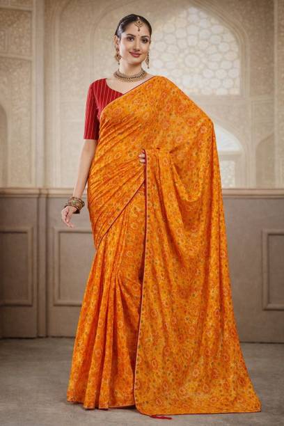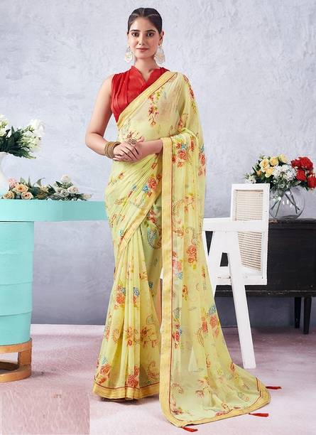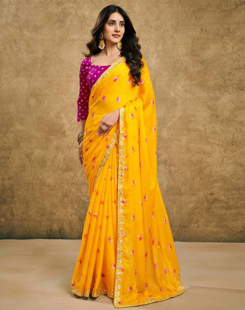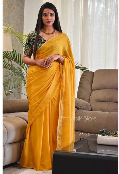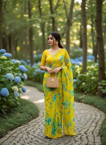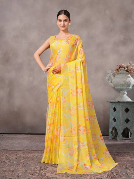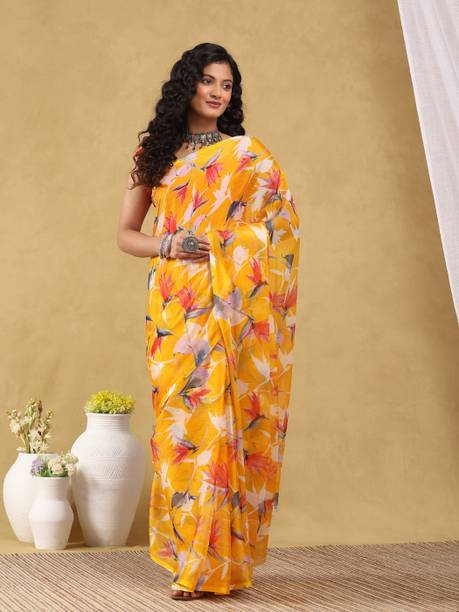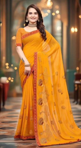 A bright and sunny yellow chiffon saree is not only a mood-uplifting choice but also a comfortable and elegant one. Chiffon sarees have been long associated with royalty and poise. The fabric is lightweight and soft, making it an ideal choice for sarees that are easy to drape with an excellent finishing look. Day-long events such as a mehendi ceremony call for the colour and texture of these sarees. Traditionally chiffon was weaved with silk before synthetic fibres such as nylon or polyester made their way into the fashion world. You can wear them to formal parties, office events, and casual luncheons or dinners, depending on how you decide to style these sarees. For example, you can wear these with a designer blouse with sequin or mirror work with minimal accessories and high heels for a formal event. You can complement these yellow chiffon sarees with high-neck full-sleeved crop tops with a string of pearls or stones for a more traditional or royal look. You can find a wide range of patterns, embroidery, embellishments and prints in these sarees, suitable for various occasions. Brands such as Anand, Mimosa, Aksaa, Bhavyakti, and Bombey Velvat Fab, offer collections of different kinds of yellow chiffon sarees online for your convenience. The information you are reading has been last updated on 21-Feb-26.