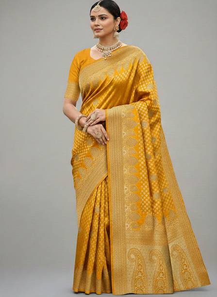 For a party, wedding or casual occasion, you can drape yourself in a beautiful yellow saree. You can buy yellow fashion sarees in art silk, Banarasi silk, chiffon, chanderi, brasso and cotton. Some of the popular brands that you can shop online are - Four Seasons, Saara, Oomph!, Indianbeauty, Shaily, Divastri and Saumya Designer. Explore the latest collection of yellow fashion sarees online, make the best selection and look drop-dead gorgeous when you step out wearing that beautiful yellow fashion saree.