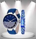 NEW FANCY MAN STYLISH BLUE DIAL- STRAP & BLUE KING BRACELET COMBO SET FOR MEN