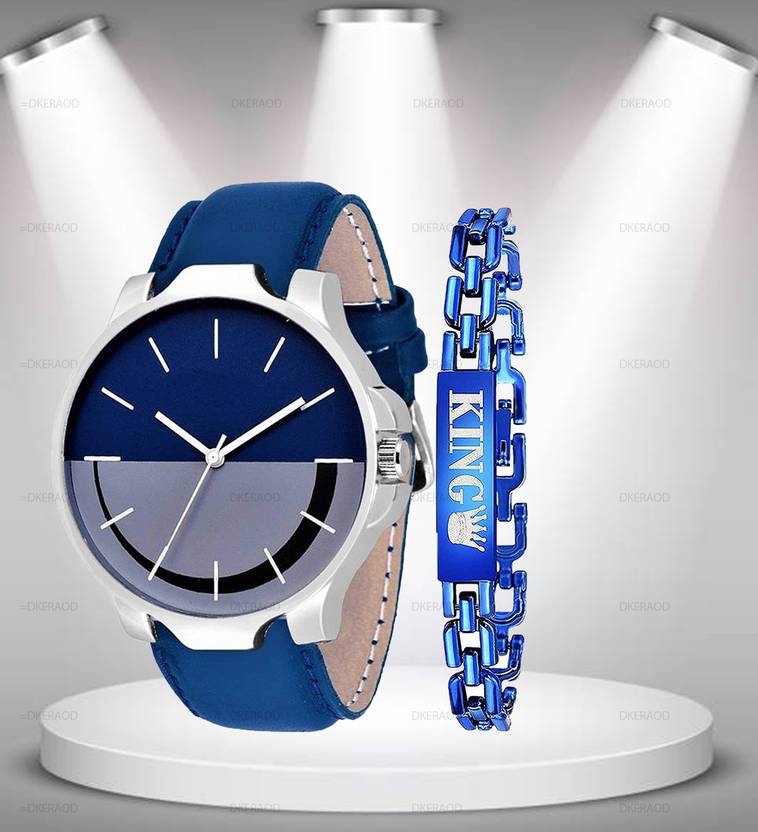 DKERAOD ANALOG NEW DESIGNER WATCH AND ONE KING BR COMBO FOR MEN AND BOYS Analog Watch - For Boys NEW FANCY MAN STYLISH BLUE DIAL- STRAP & BLUE KING BRACELET COMBO SET FOR MEN