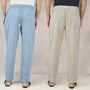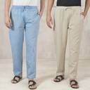 Qashida Men's Cotton Handloom Pants – Combo of 2 – Comfortable Everyday Bottom Wear, Denim and Beige