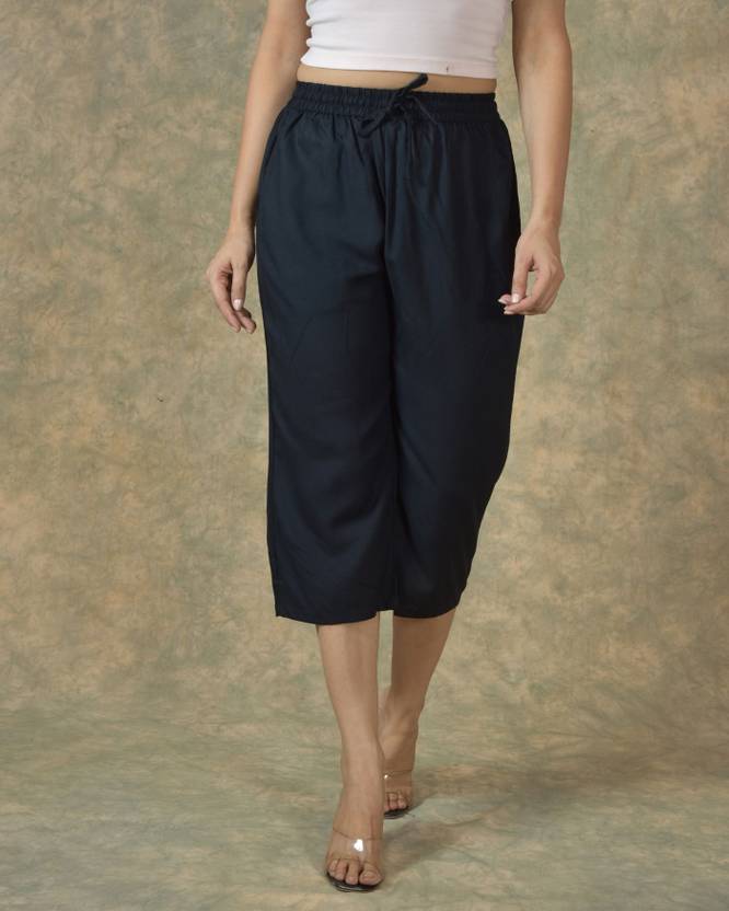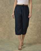 Qashida Women’s Rayon Solid Culottes, Partially Elasticated with Drawstring, Stylish with 2 Side Cross Pockets, Navy Blue