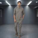 Qashida Men's Cotton Co-ord Set - Kurta & Pant Set, Full Sleeve, Mandarin Collar, Hip Length, 2 Side Pockets