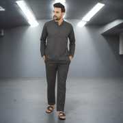 Qashida Men's Cotton Co-ord Set - Kurta & Pant Set, Full Sleeve, Mandarin Collar, Hip Length, 2 Side Pockets