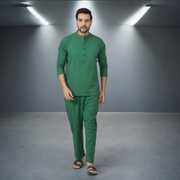 Discover the perfect blend of traditional style and modern comfort with the Qashida Men's Cotton Co-ord Set. Crafted from breathable cotton, this versatile kurta and pant set is ideal for any occasion, from casual outings to festive celebrations. The kurta features a classic mandarin collar and full sleeves, offering a sophisticated look that is easy to style. The hip-length design complements the tapered pants, which come equipped with two side pockets for added convenience. Elevate your wardrobe with this elegant and functional co-ord set that promises both style and comfort.