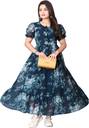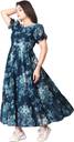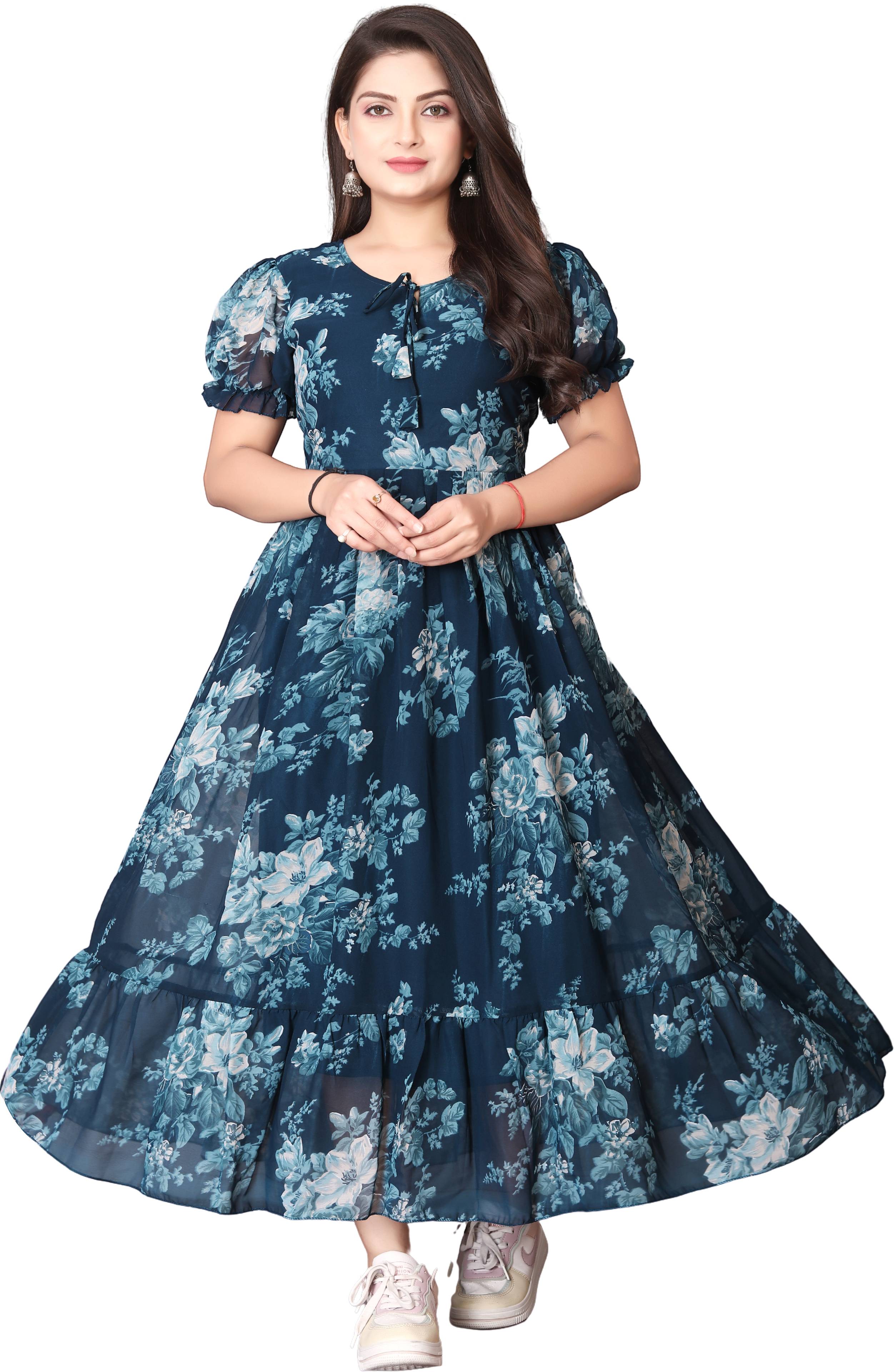 Designed with puff sleeves, a round neckline with tie detail, and a flattering gathered waist, it offers a perfect blend of comfort and style. The lightweight fabric and flared hem create a flowy silhouette that moves beautifully. Pair it with sneakers for a casual outing or heels for a chic evening look.