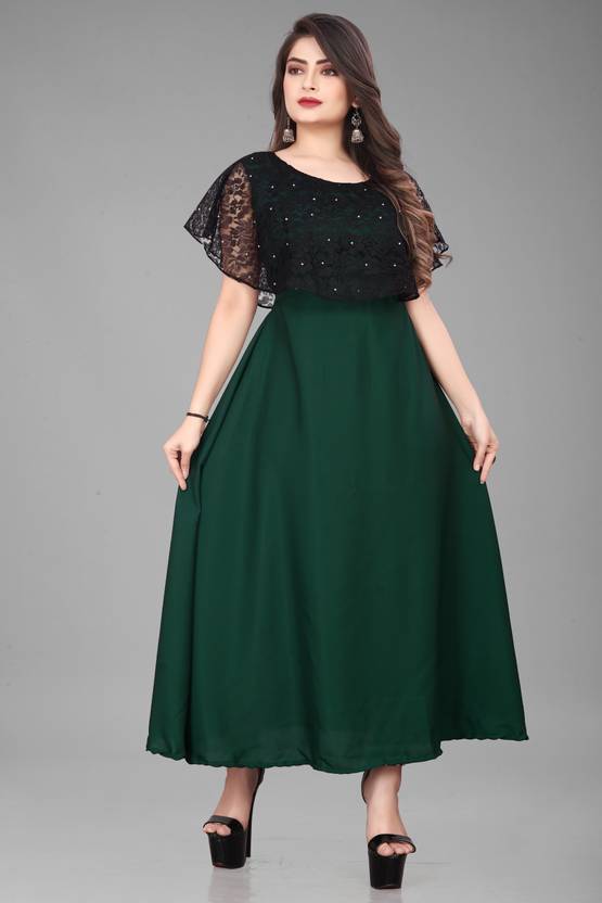 Dress Fabric : Crepe|| * Style : Flare Straight || * Length : Ankle Length * Sleeves : Short Sleeves || Sleeve Styling : Puffed sleeves || * Neck : Round Neck * Ocassion: Casual || Party || Wedding || Festival || Formal * Neck :- Round Neck|| * Design:- A line floral print || • FABRIC AND DESIGN: The crepe fabric in this attractive color ready to wear gown dress will make sure that the fitting of this beautiful readymade dress looks elegant on you in addition with beautifully designed puffed sleeves and Crafted from crepe fabric, it is light in weight and will be soft against your skin. • DESIGN AND COLOUR: Its has unique design and beautiful colour will fetch a lot of second glances as you club it with contrast colored pumps and flashy accessory. • STICHED: Our Products are Made and stitched using high grade fabrics and yarns under the strict surveillance of our well-versed Executives. • READY TO WEAR:It is capable of making you look gorgeous. Wear it and put your step in the world of fashion. It looks stunning every time you match it with every kind of accessories and gives you a stunning look.