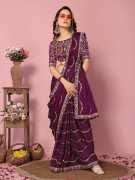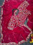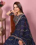 QEXTY Embroidered Bollywood Silk Blend Saree (Black)