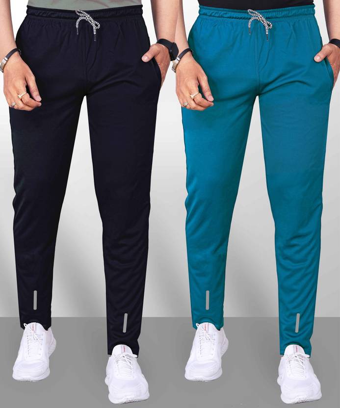 QFABRIX Pack of 2 Men Solid Black, Light Blue Track Pants