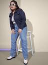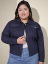 QIOA Twill Cotton Blend Navy Plus Size Women Regular Jacket