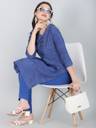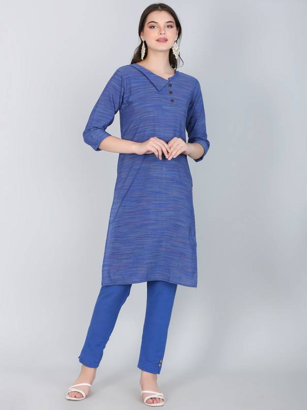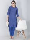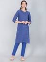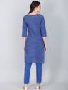 Women Self Design Khadi Silk Straight Kurta (Blue)