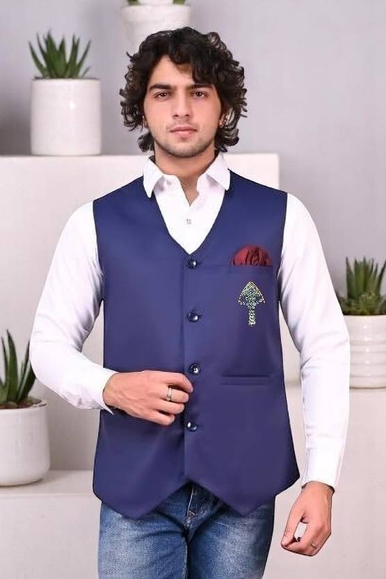 Elevate your semi-formal style with the D320 Waistcoat, featuring a sleek silhouette, elegant design, and a statement brooch. Tailored in a premium black fabric with a rich satin lining, this waistcoat includes a stylish maroon pocket square and decorative brooch, making it ideal for festive occasions, parties, weddings, or evening events. Pair it with a crisp white shirt and denim or trousers for a sharp Indo-western appeal. Men's Black Waistcoat with Brooch, Indo Western Waistcoat for Men, Partywear Waistcoat with Pocket Square, Stylish Sleeveless Nehru Jacket, Festive Wear for Men, Slim Fit Waistcoat Black, Brooch Waistcoat for Wedding, Black Formal Waistcoat Men, Designer Men’s Waistcoat Semi Formal