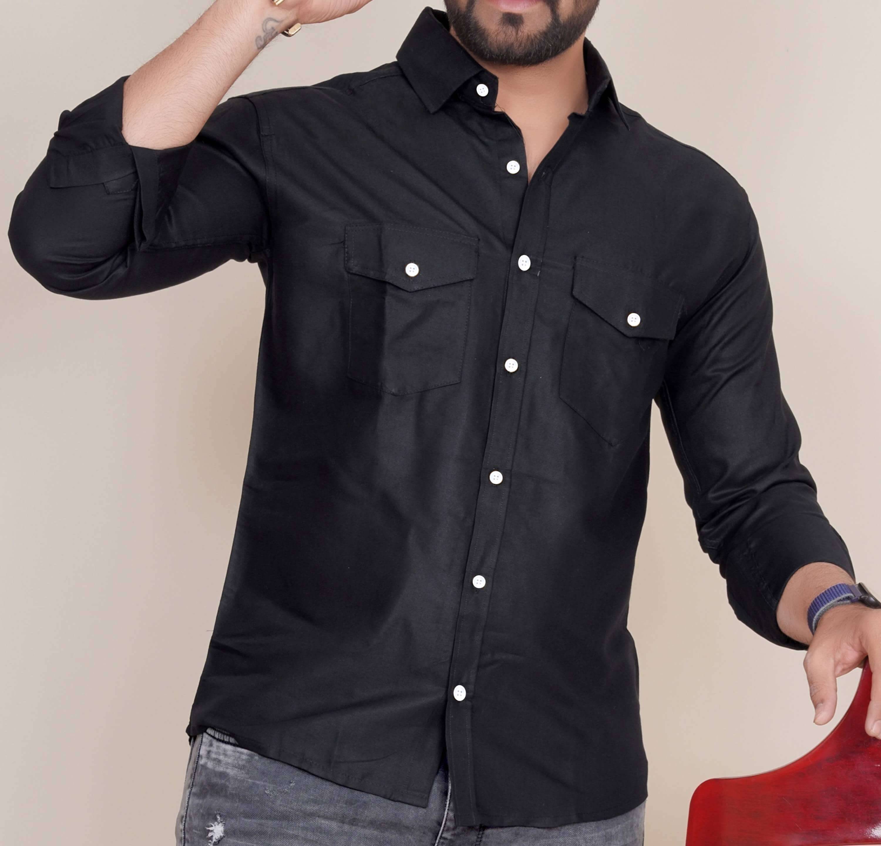 Troonpair Men Solid Casual Black Shirt